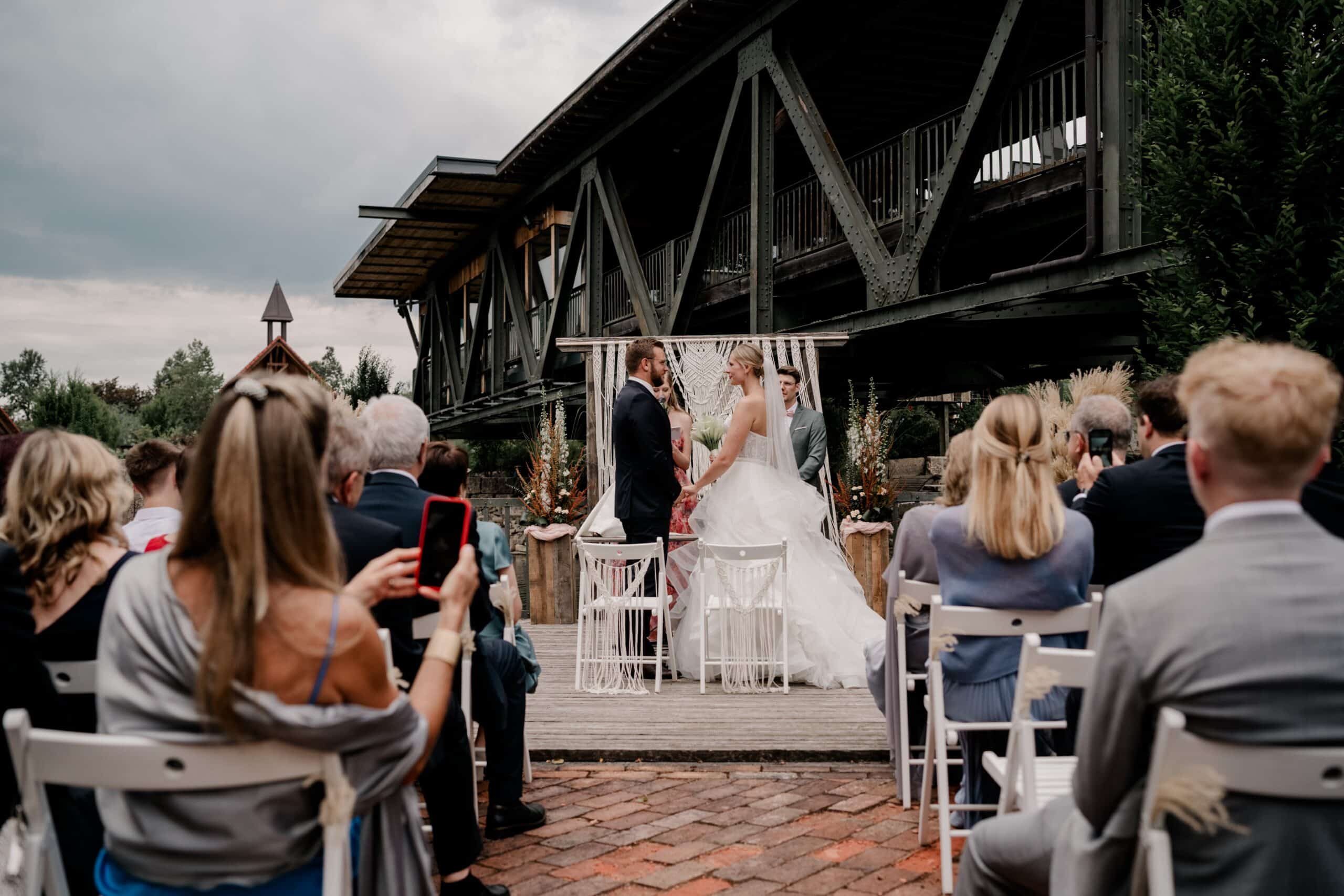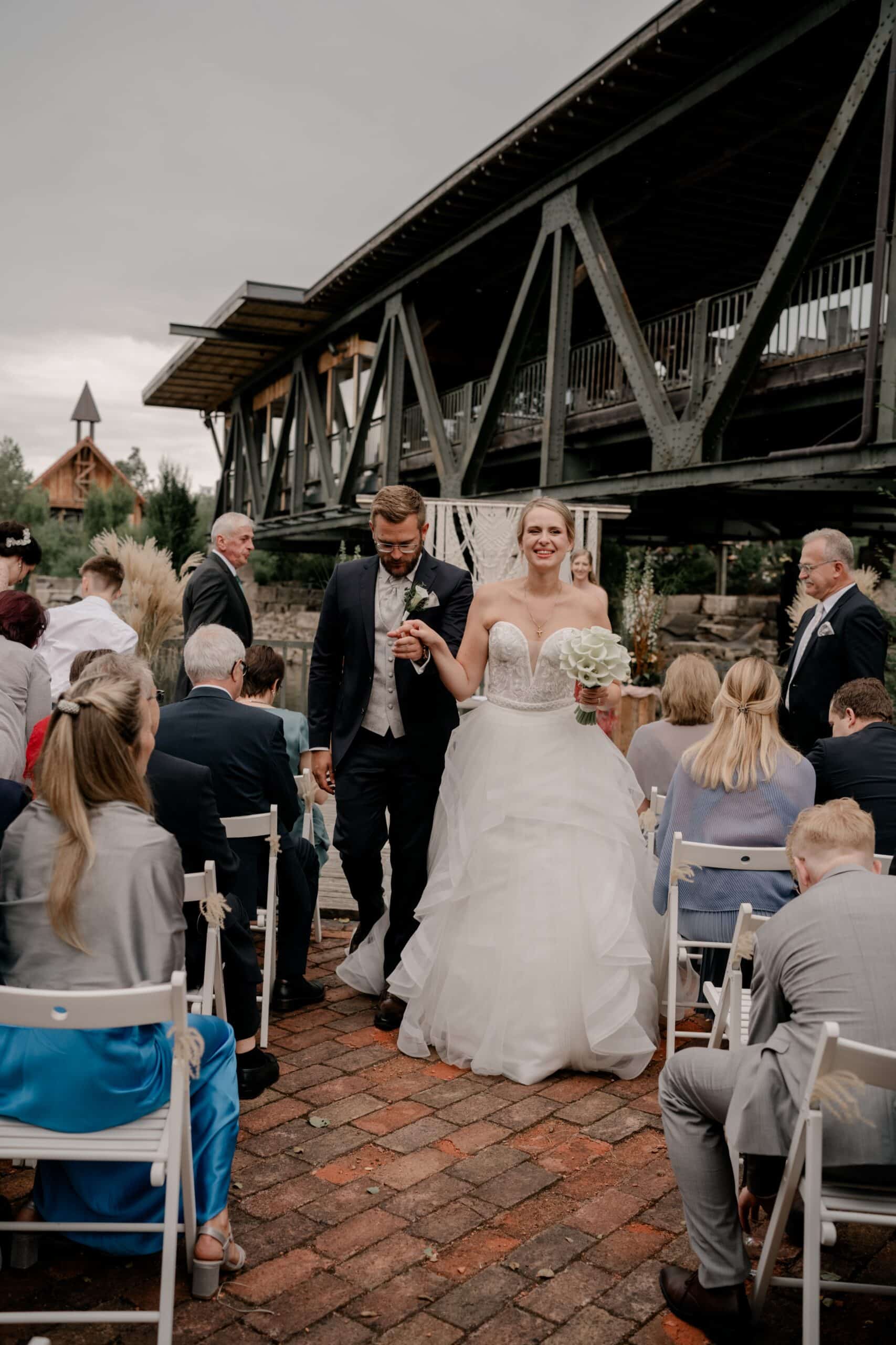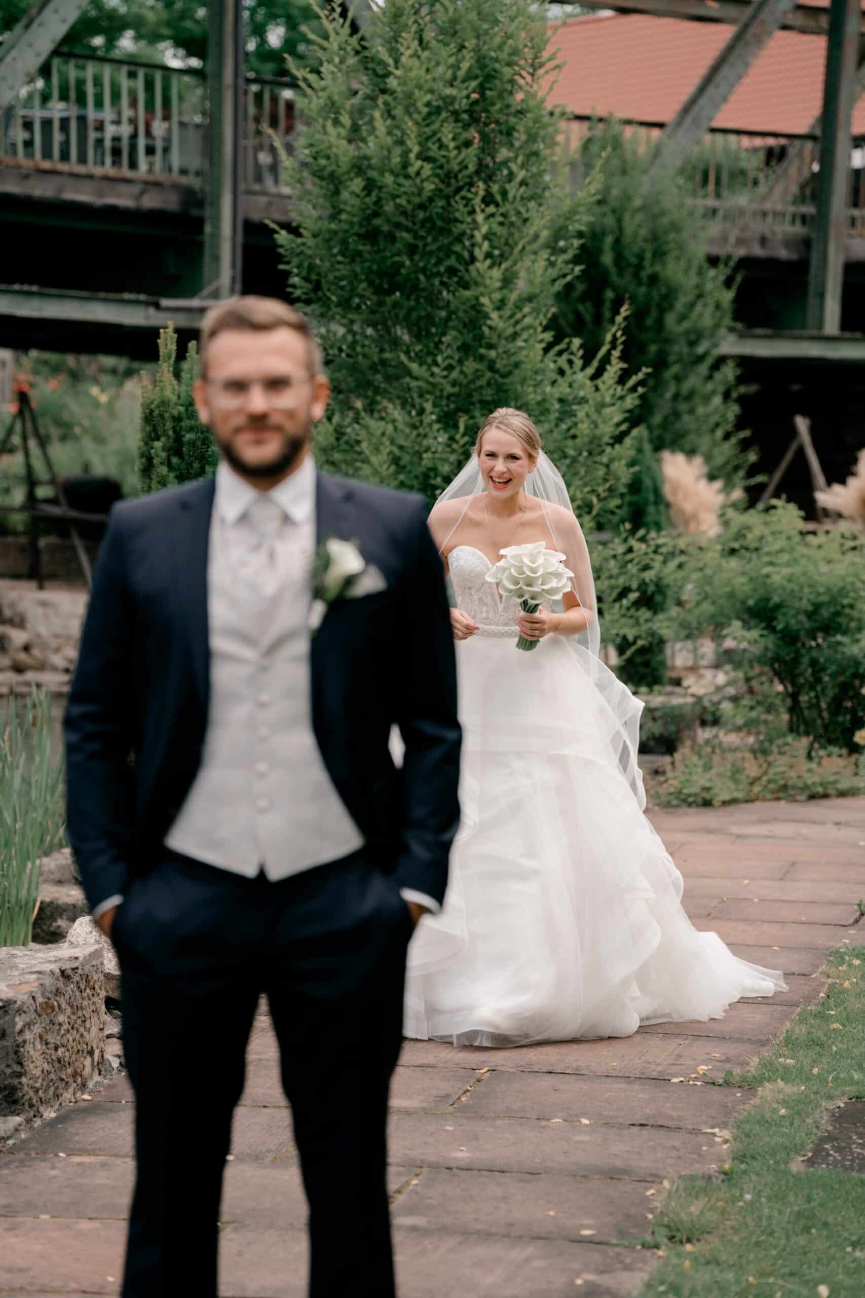 Der Tag startete mit einem First Look direkt am See der zur Anlage gehört. Es war ein ruhiger Moment am Wasser bevor der Trubel losging. Wir haben die Zeit direkt genutzt um das Paarshooting auf dem weitläufigen Gelände zu machen. Der Brückenbaron bietet unglaublich viele spannende Hintergründe. Von wilder Natur bis zu rostigen Stahlelementen die den Bildern diesen besonderen editorial Look geben.