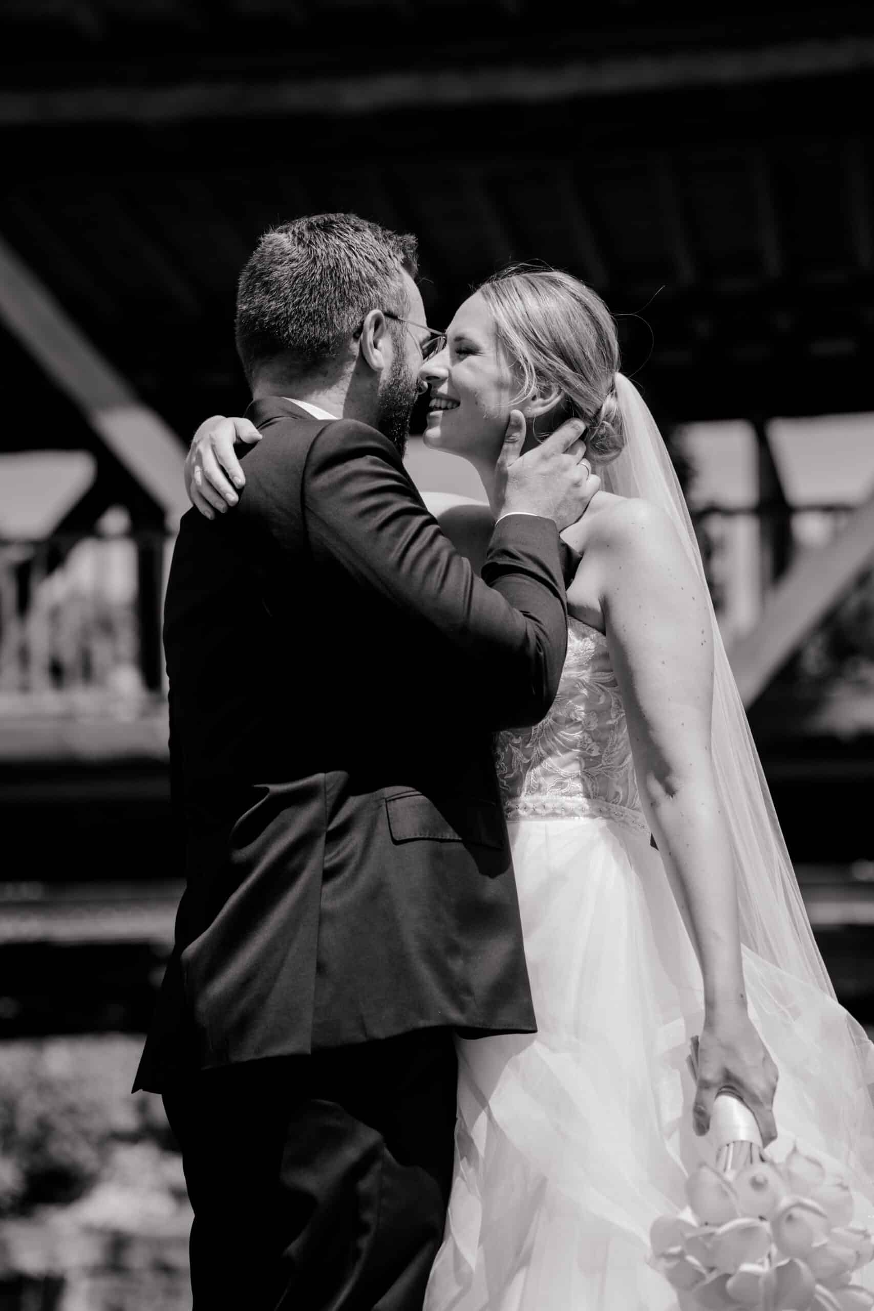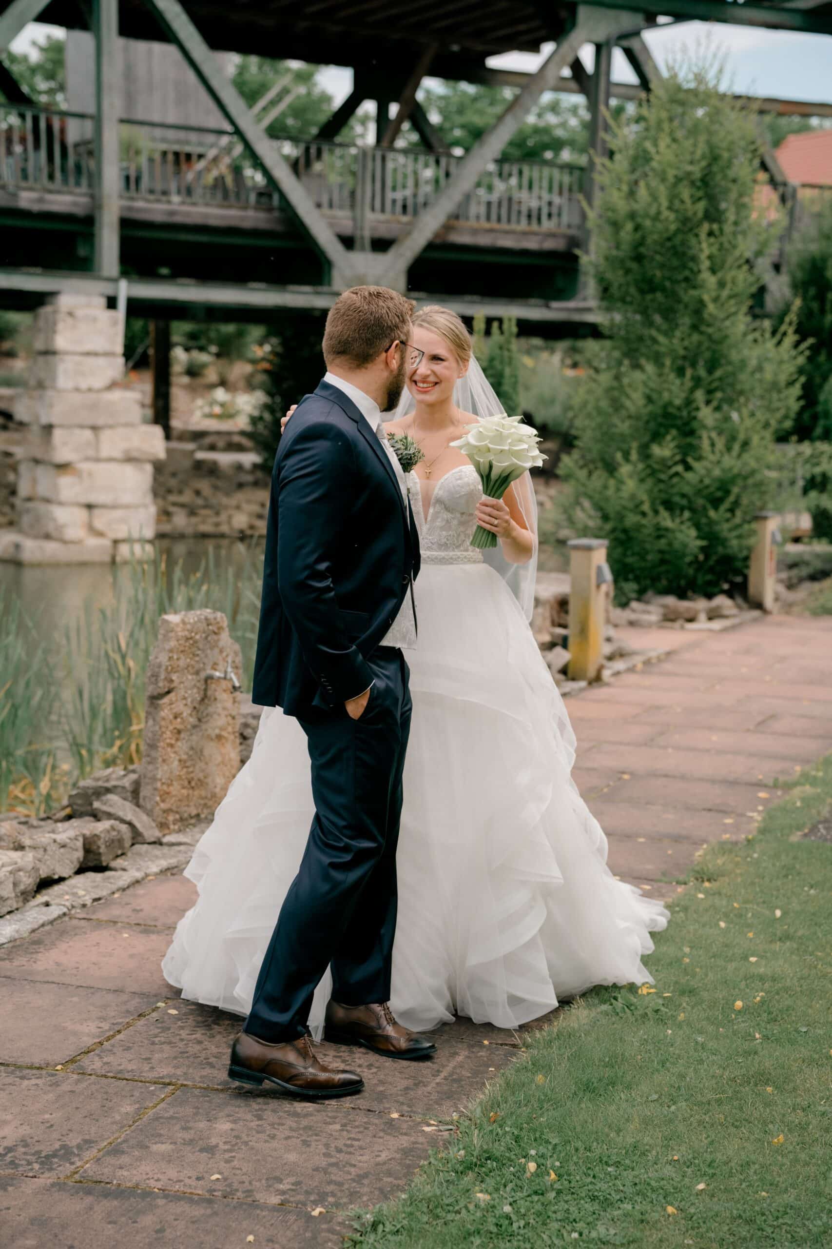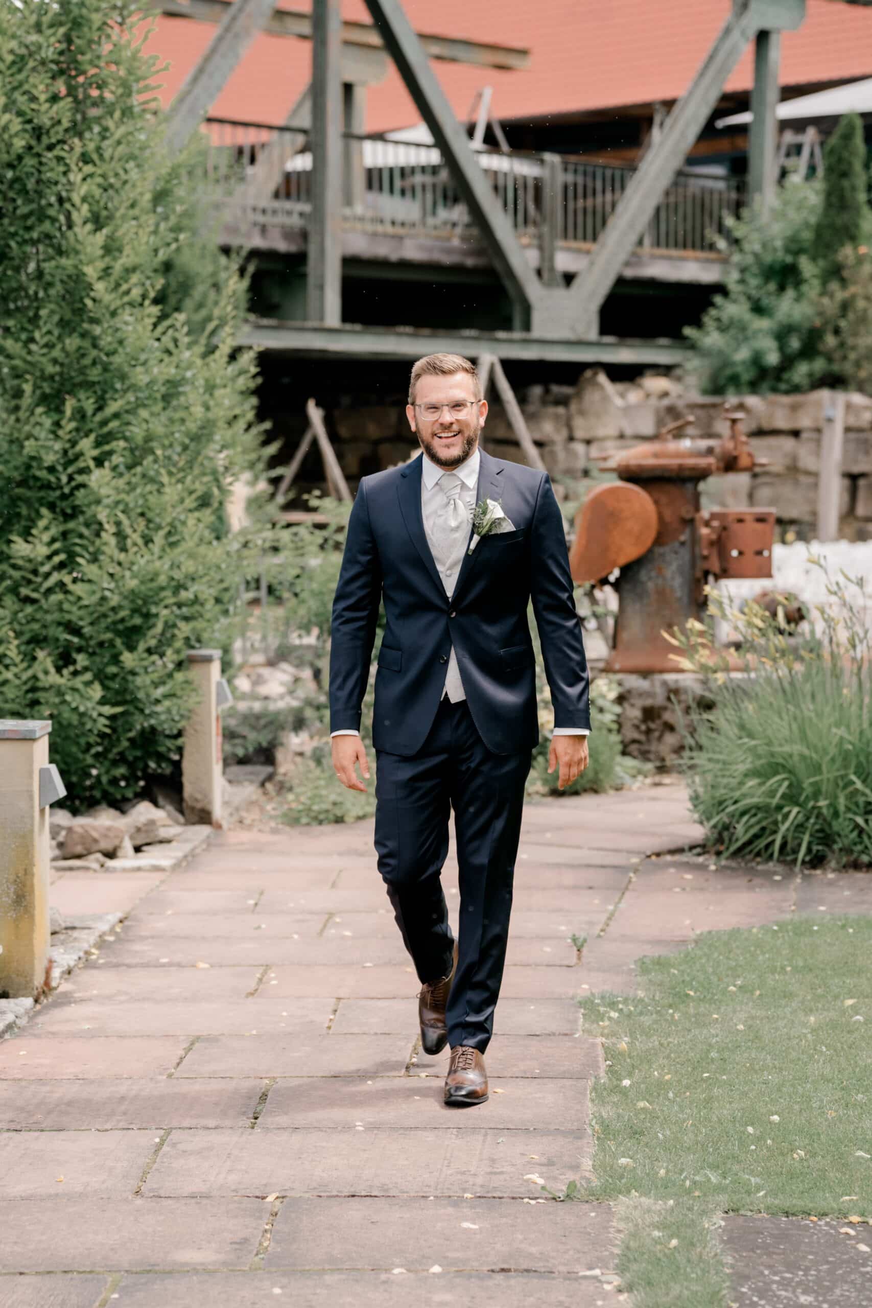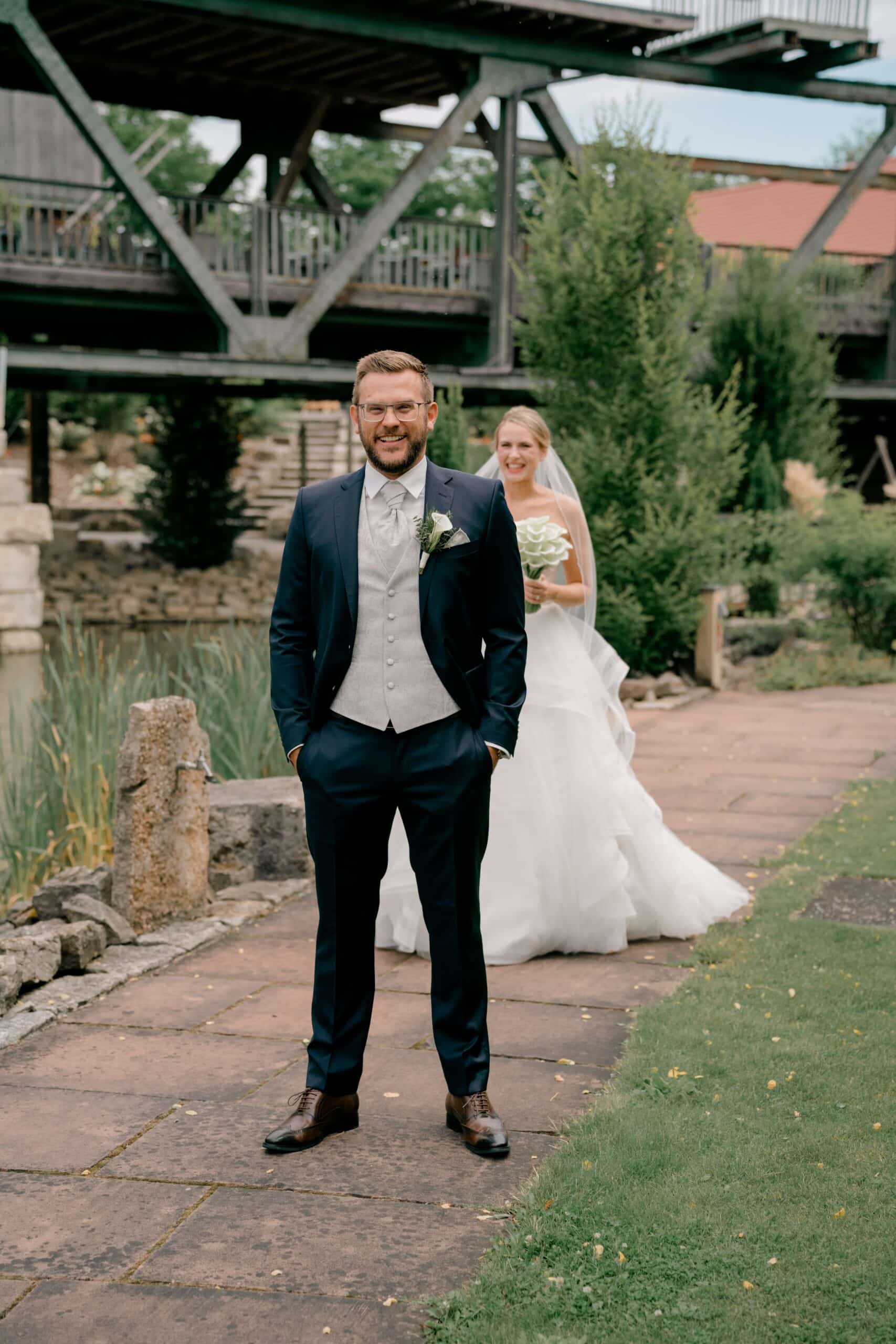 Der Tag startete mit einem First Look direkt am See der zur Anlage gehört. Es war ein ruhiger Moment am Wasser bevor der Trubel losging. Wir haben die Zeit direkt genutzt um das Paarshooting auf dem weitläufigen Gelände zu machen. Der Brückenbaron bietet unglaublich viele spannende Hintergründe. Von wilder Natur bis zu rostigen Stahlelementen die den Bildern diesen besonderen editorial Look geben.