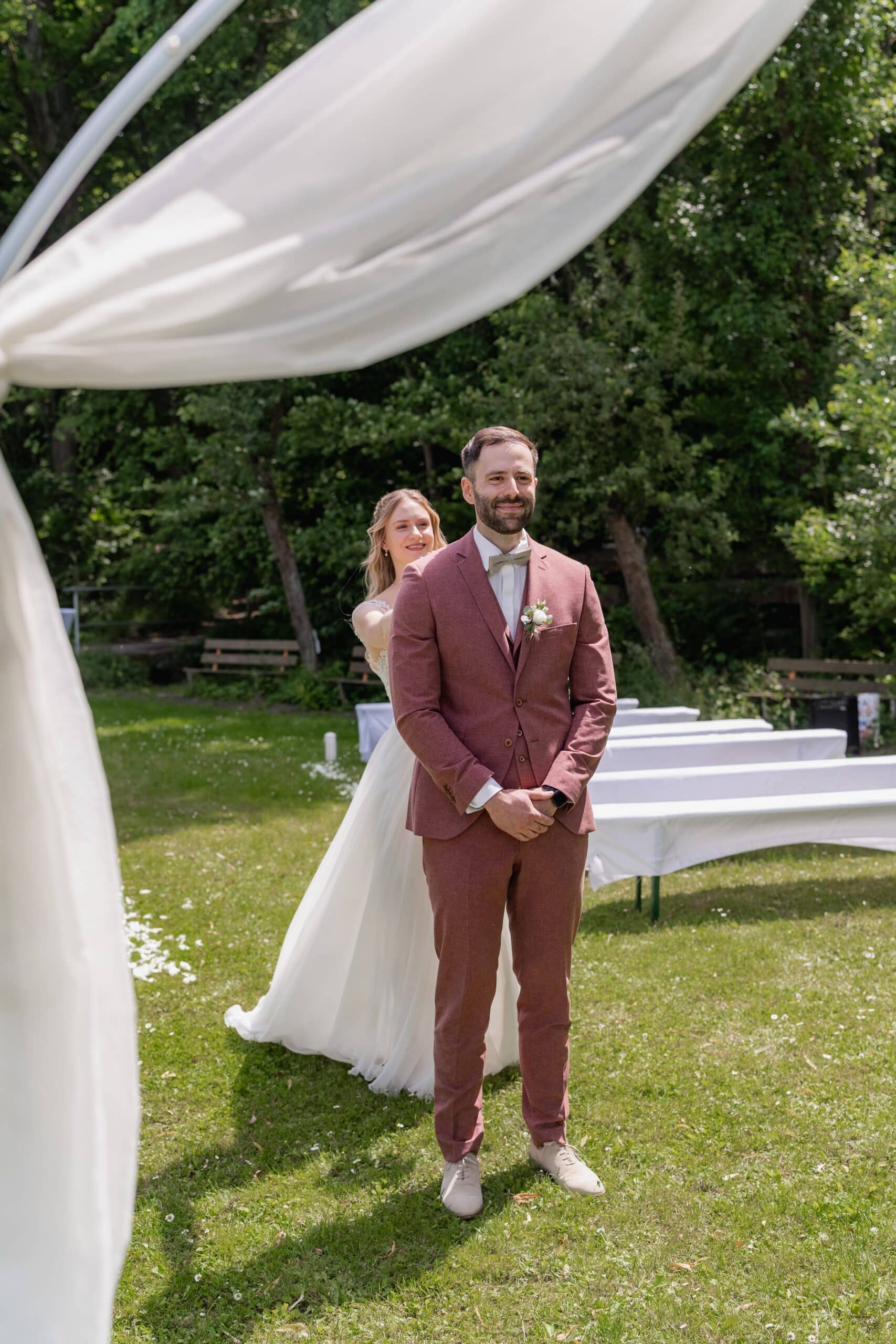 Auch ein kurzer Regenschauer während der Trauung konnte die Stimmung nicht kippen – im Gegenteil. Die Gäste nahmen es gelassen und es entstanden genau diese echten, unperfekten Momente die eine Reportage am Ende so lebendig machen.