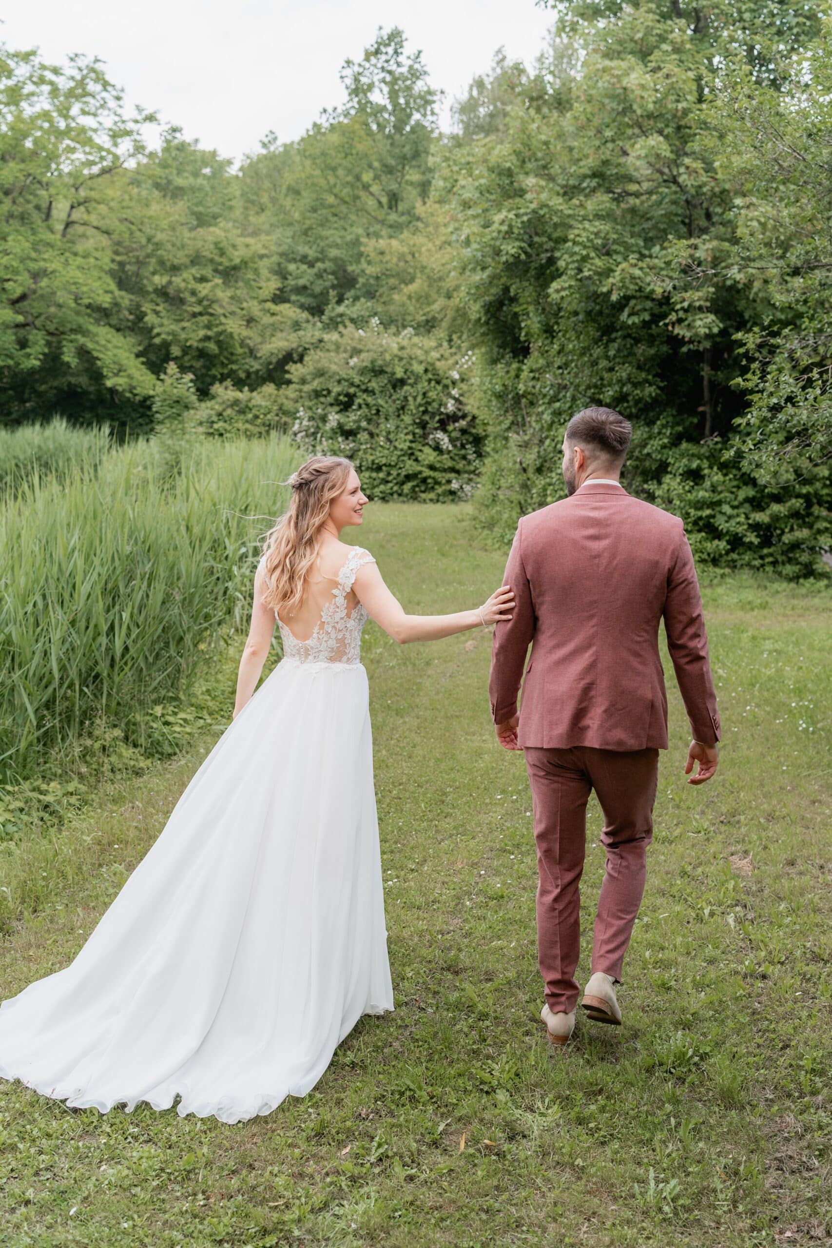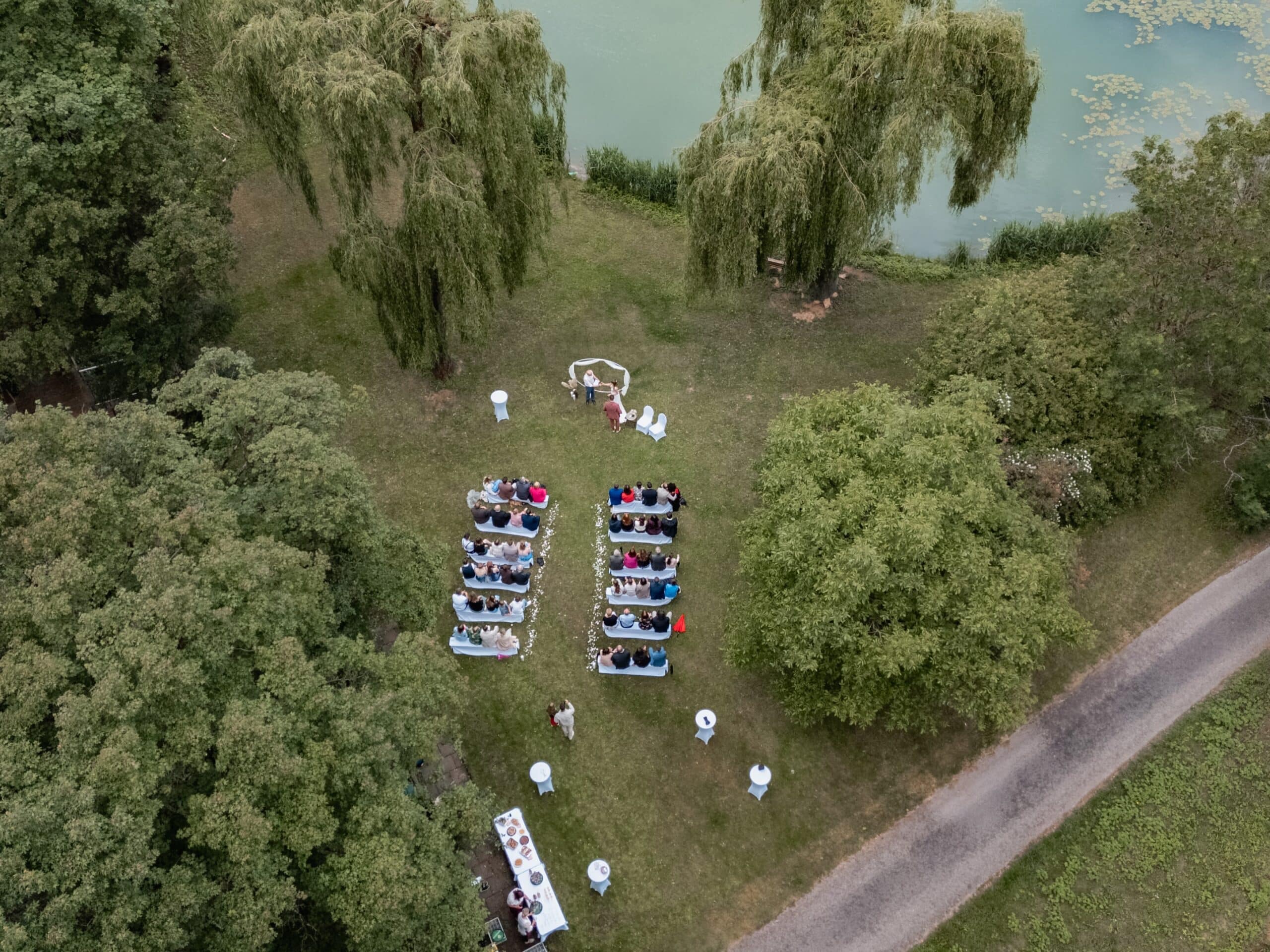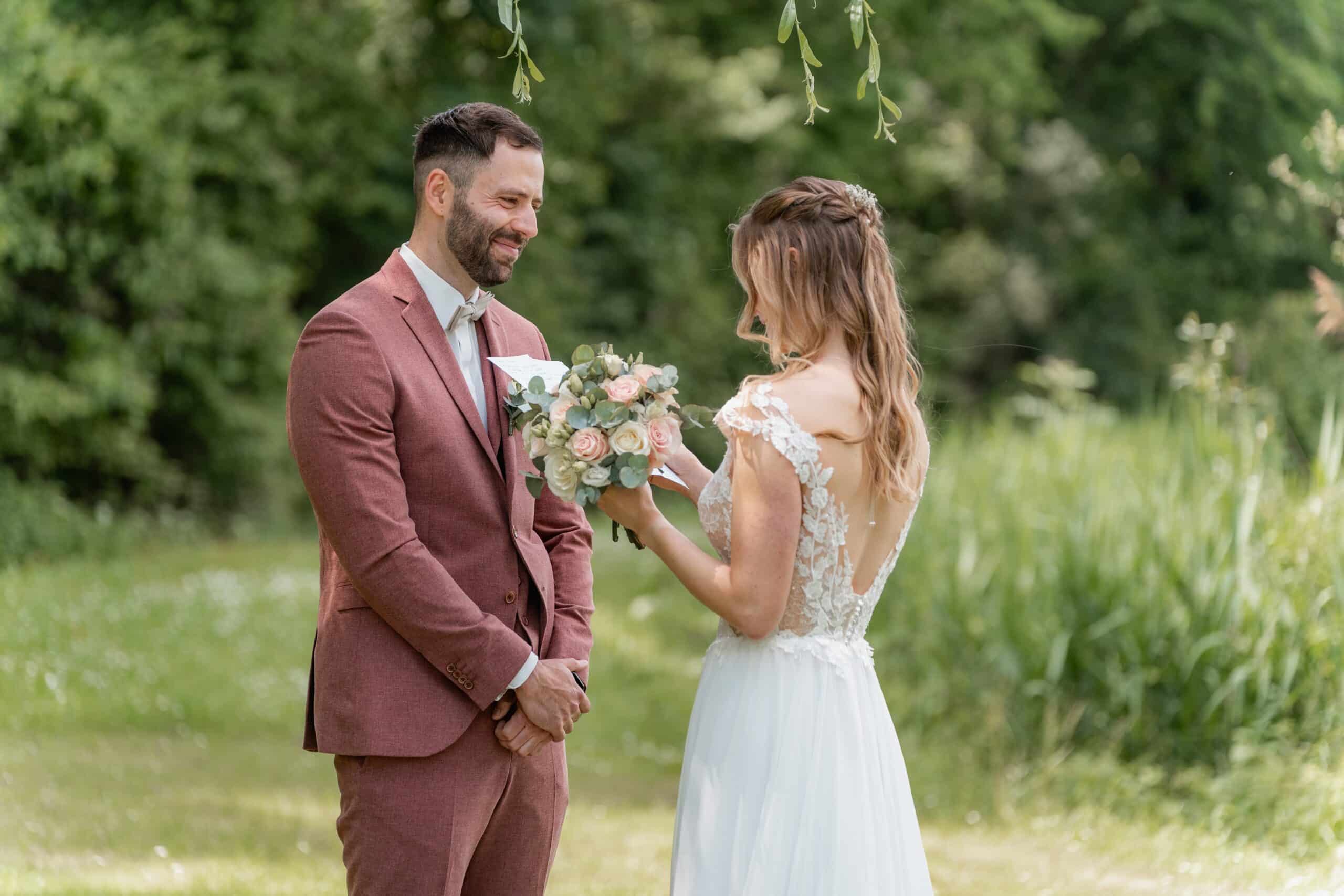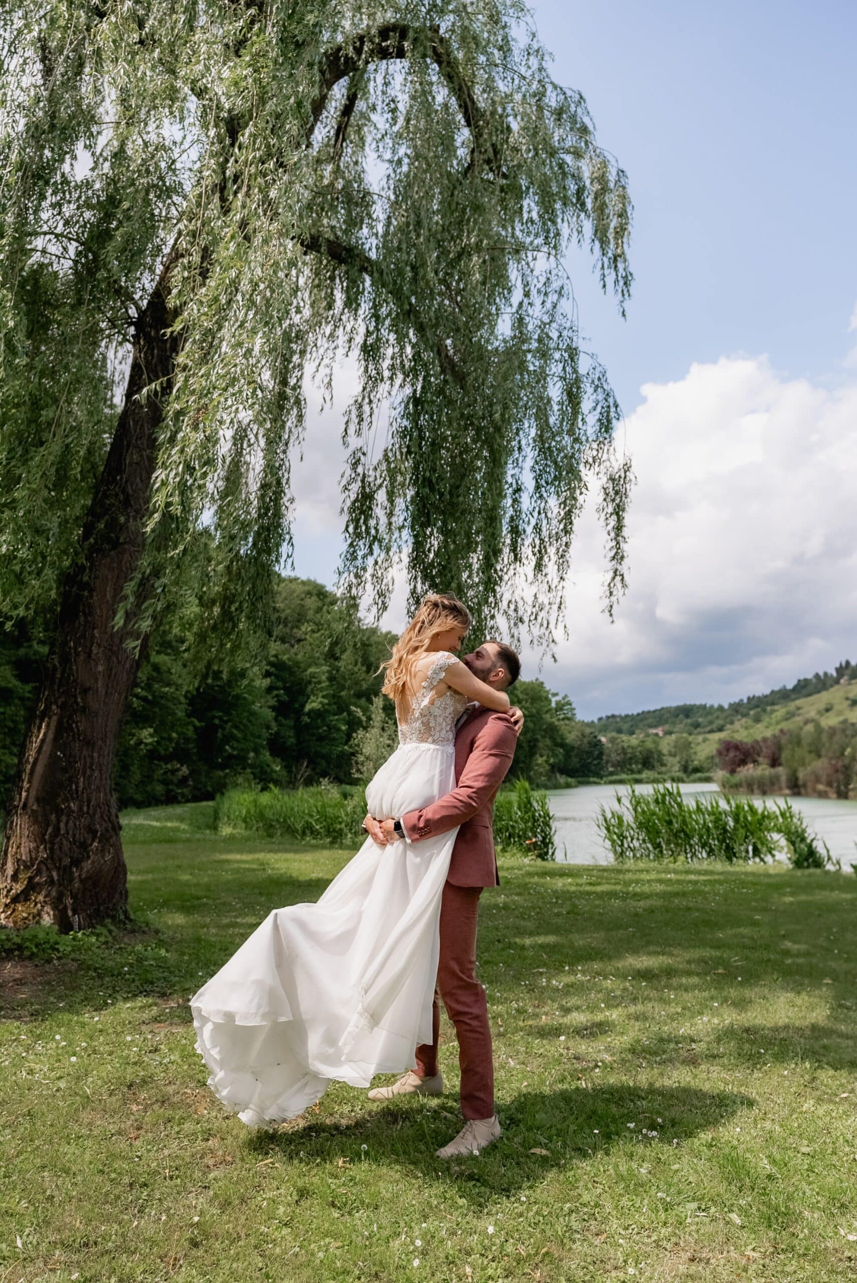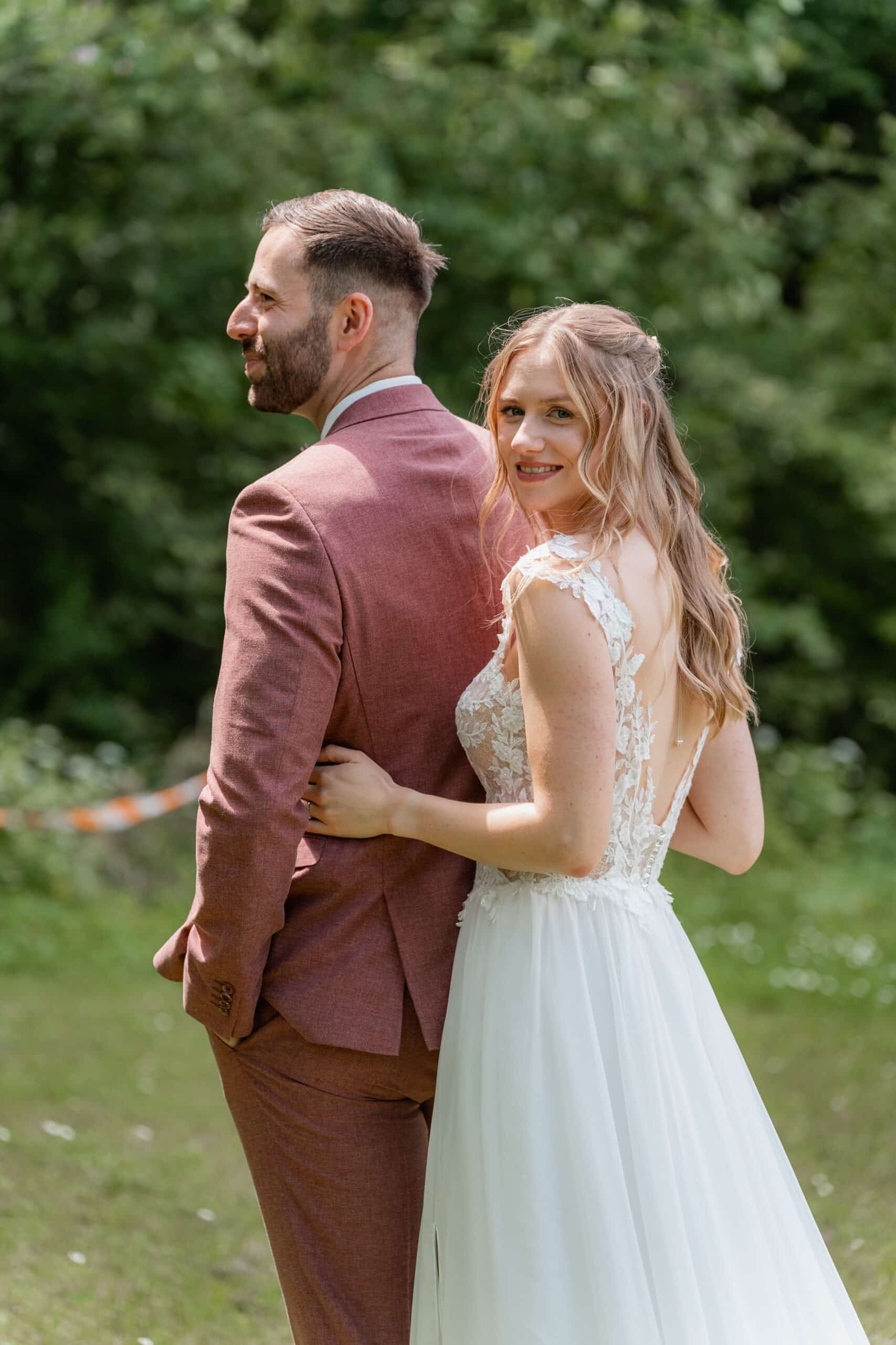 Der Tag begann mit einem emotionalen First Look direkt am See unter der großen Trauerweide. Abseits vom Trubel haben sich die beiden hier zum ersten Mal gesehen – ein Moment der ganz ihnen gehörte. Wir haben die Zeit direkt für ein Paarshooting genutzt bei dem natürliche Bilder entstanden sind. Ein Wechsel von Posing und natürlicher Dynamik, nur die beiden, das Licht und die Kulisse am Wasser.