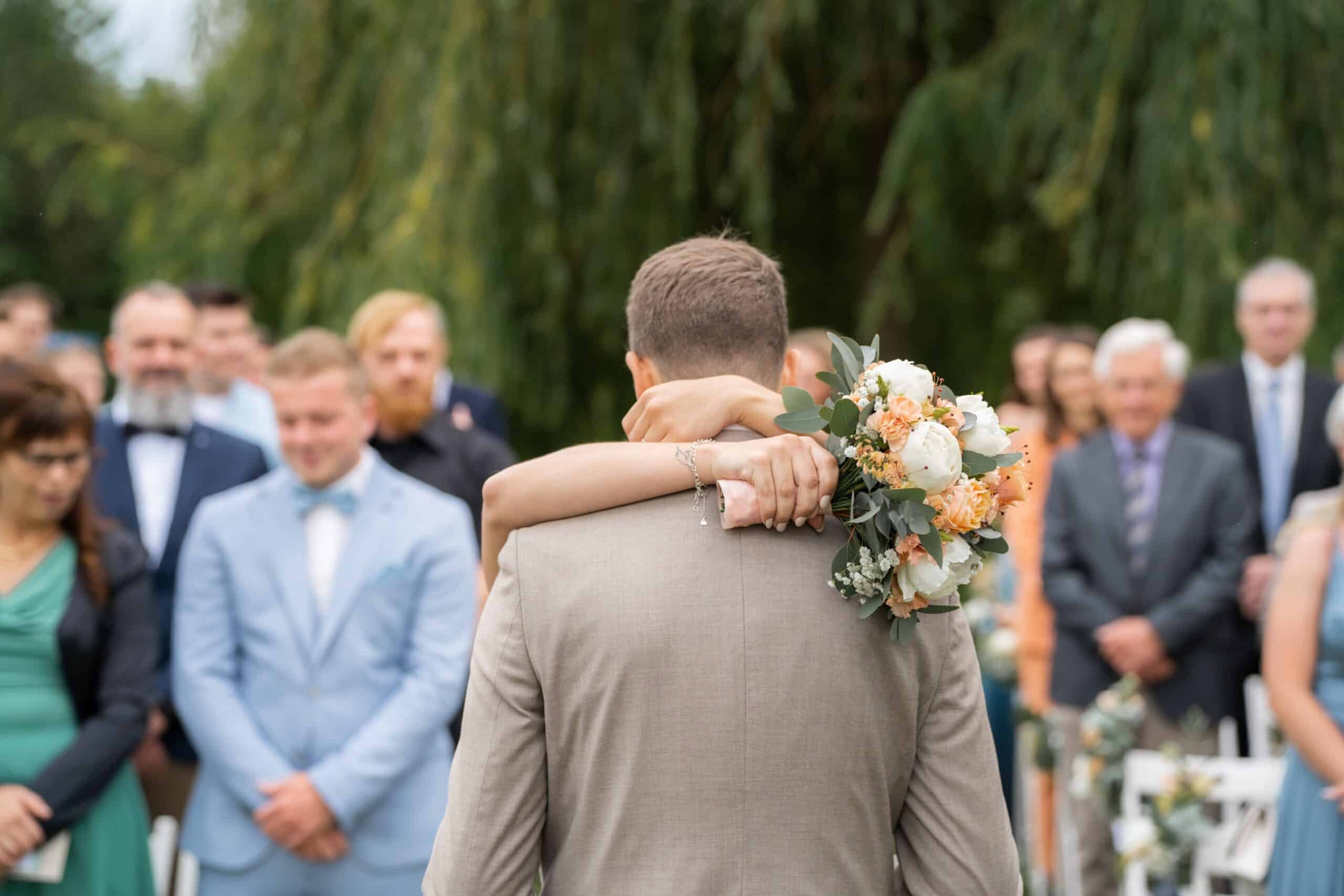 Glücklicherweise machte der Regen eine kurze Pause, so dass die freie Trauung direkt am See stattfinden konnte.