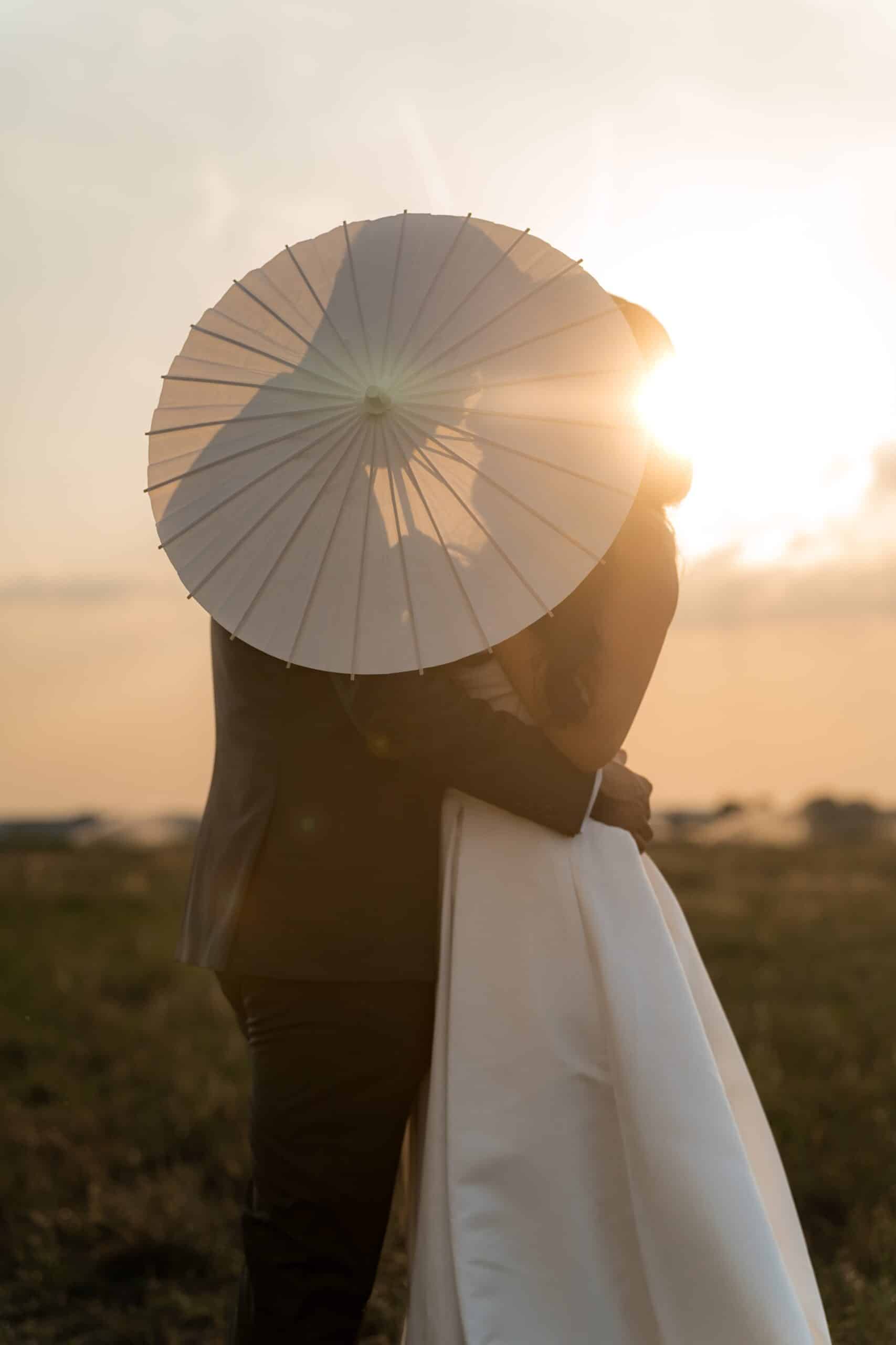 Zurück im Schindlerhof fand die freie Trauung statt. Nach der Zeremonie und dem Essen haben wir das goldene Abendlicht noch für ein kurzes Sunset Shooting genutzt – diese paar Minuten vor Sonnenuntergang sind oft ein Highlight des Tages.