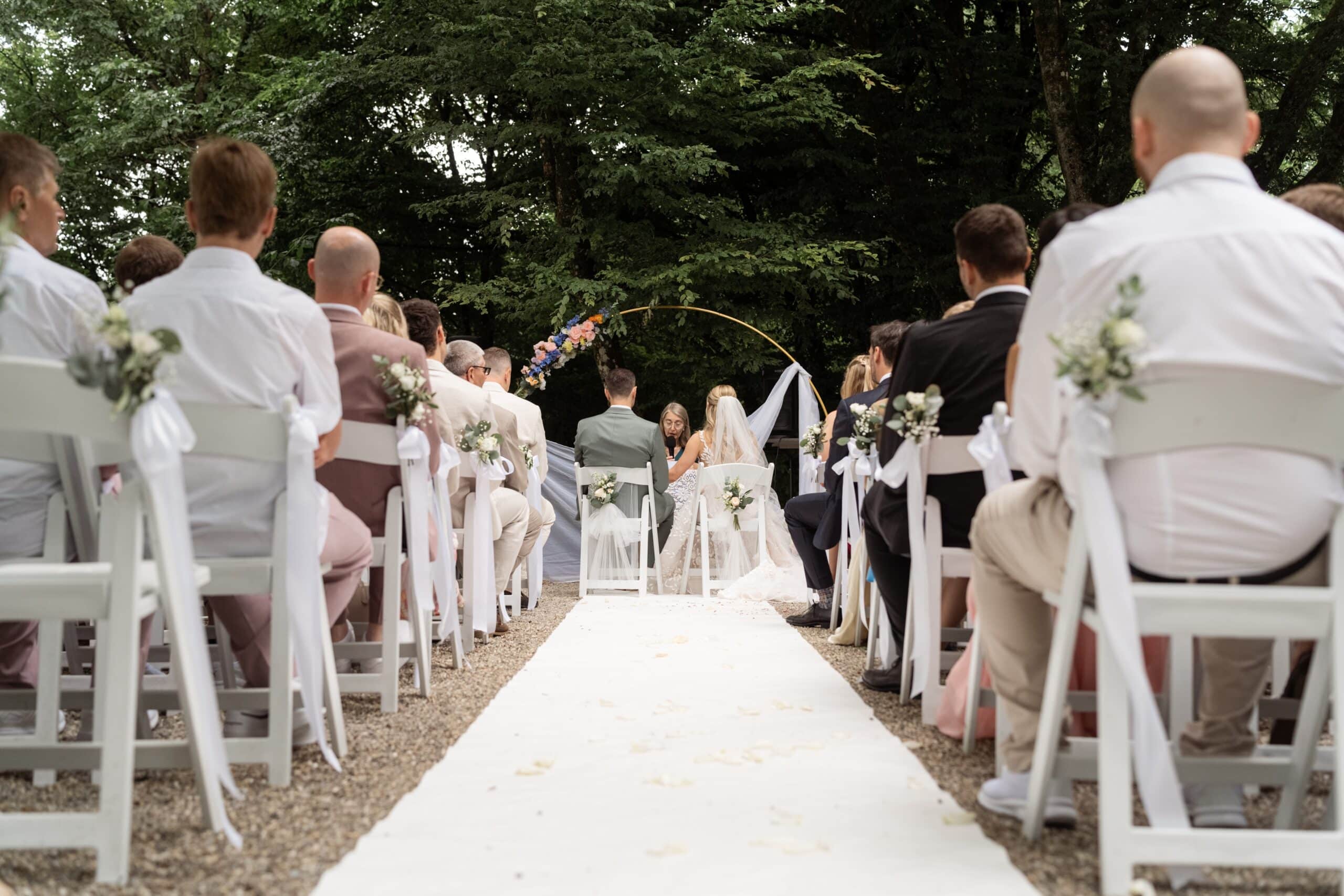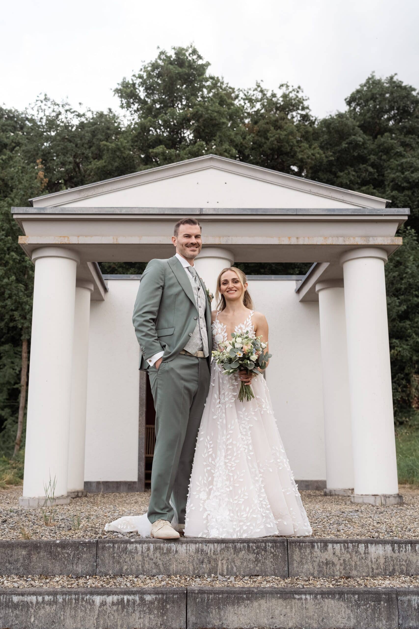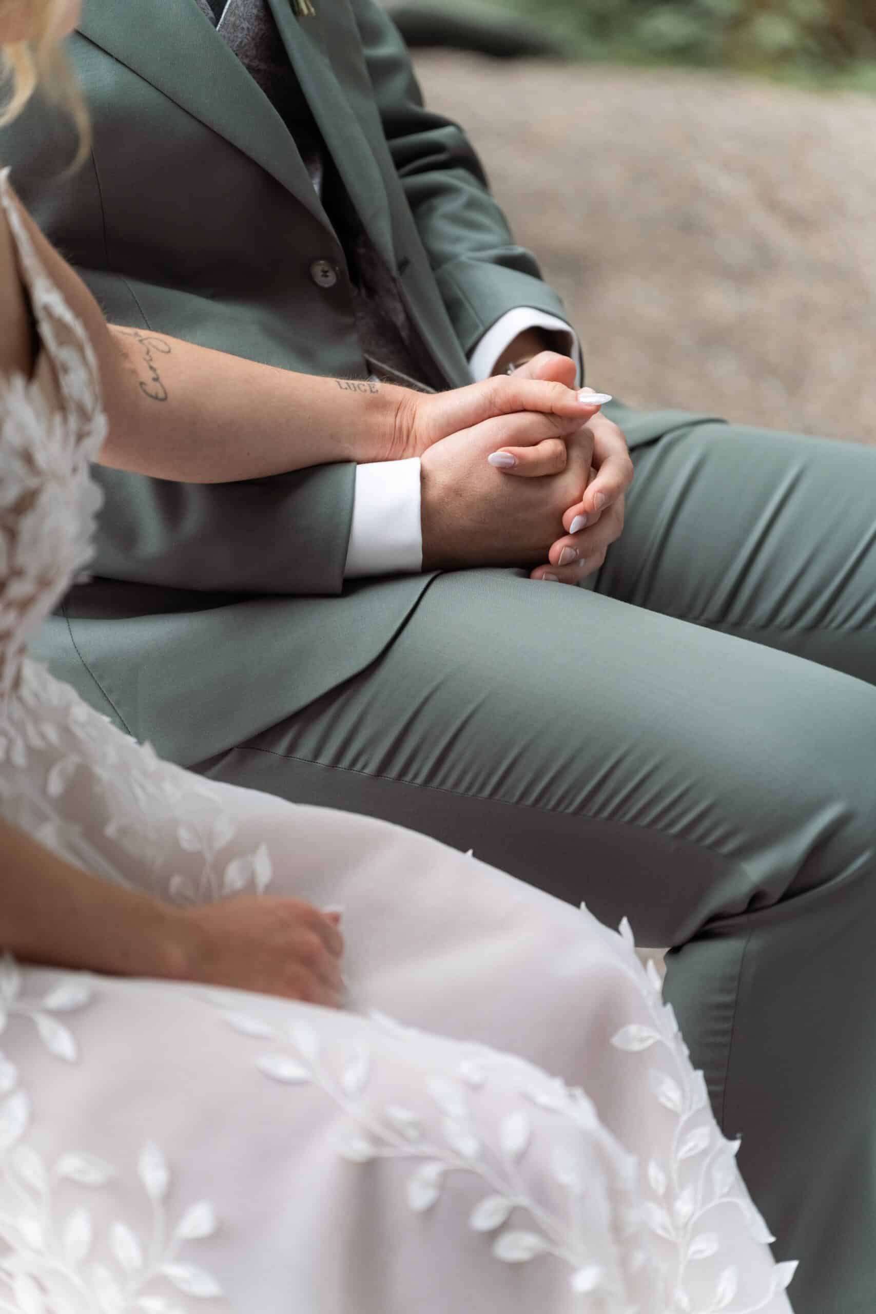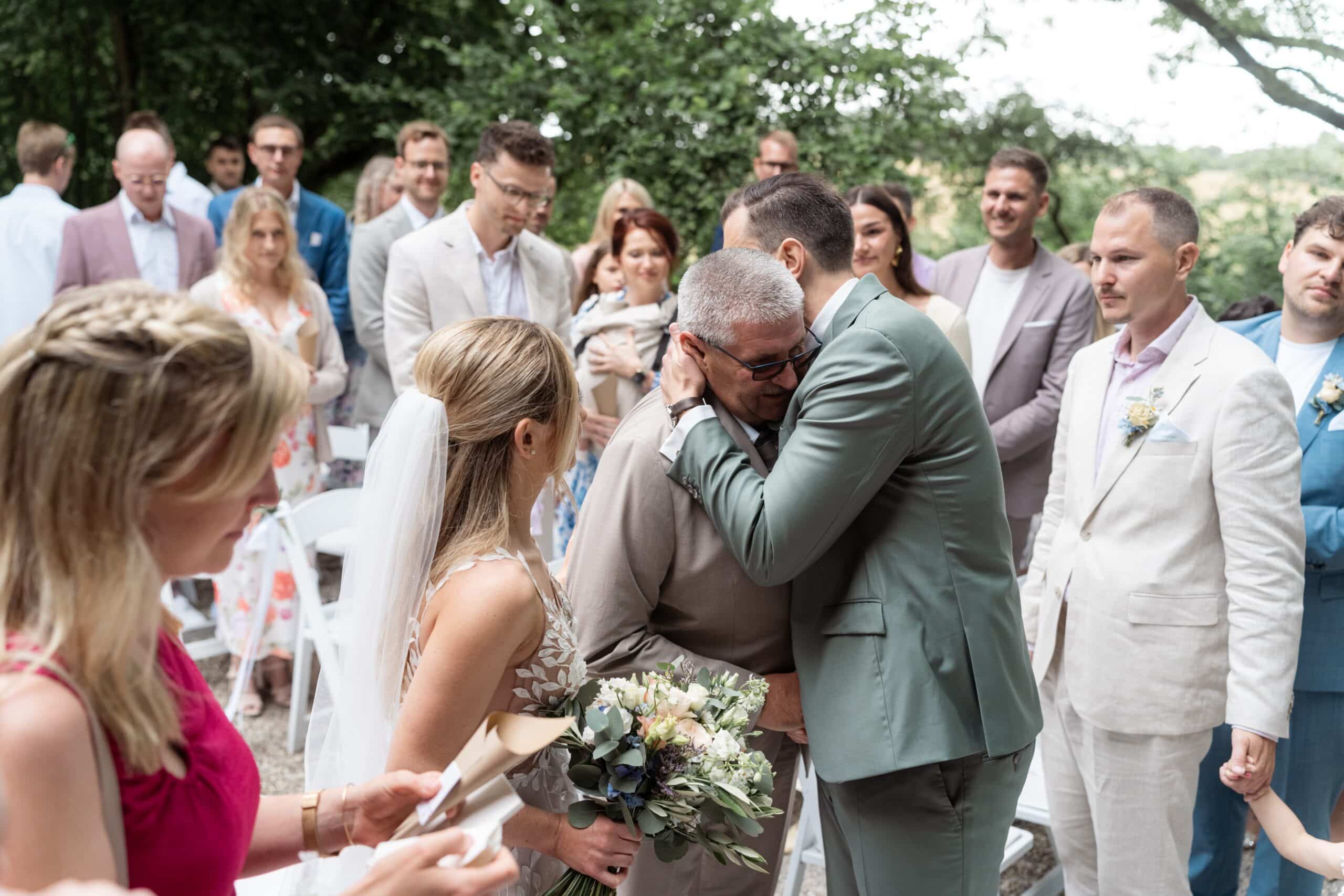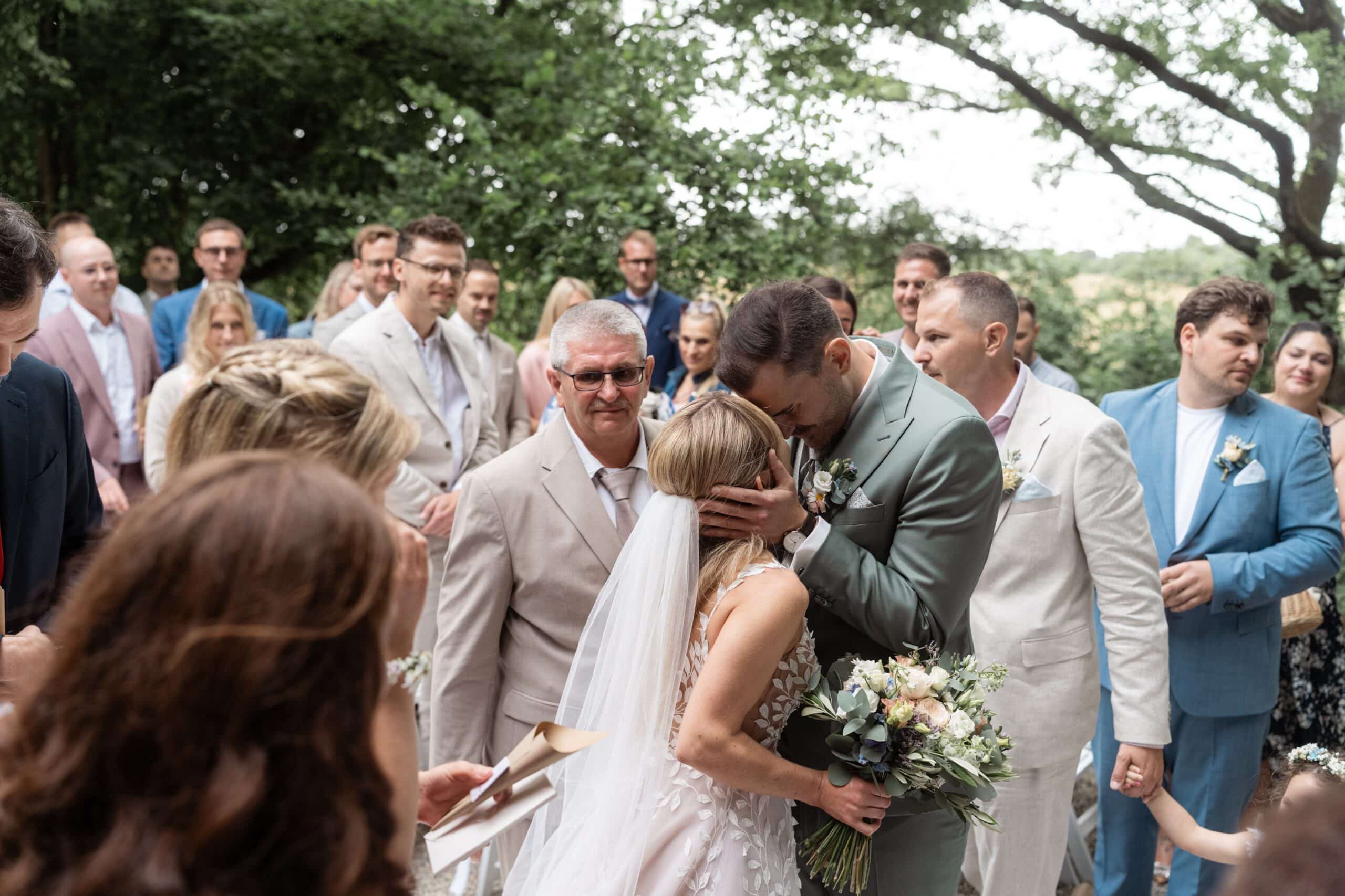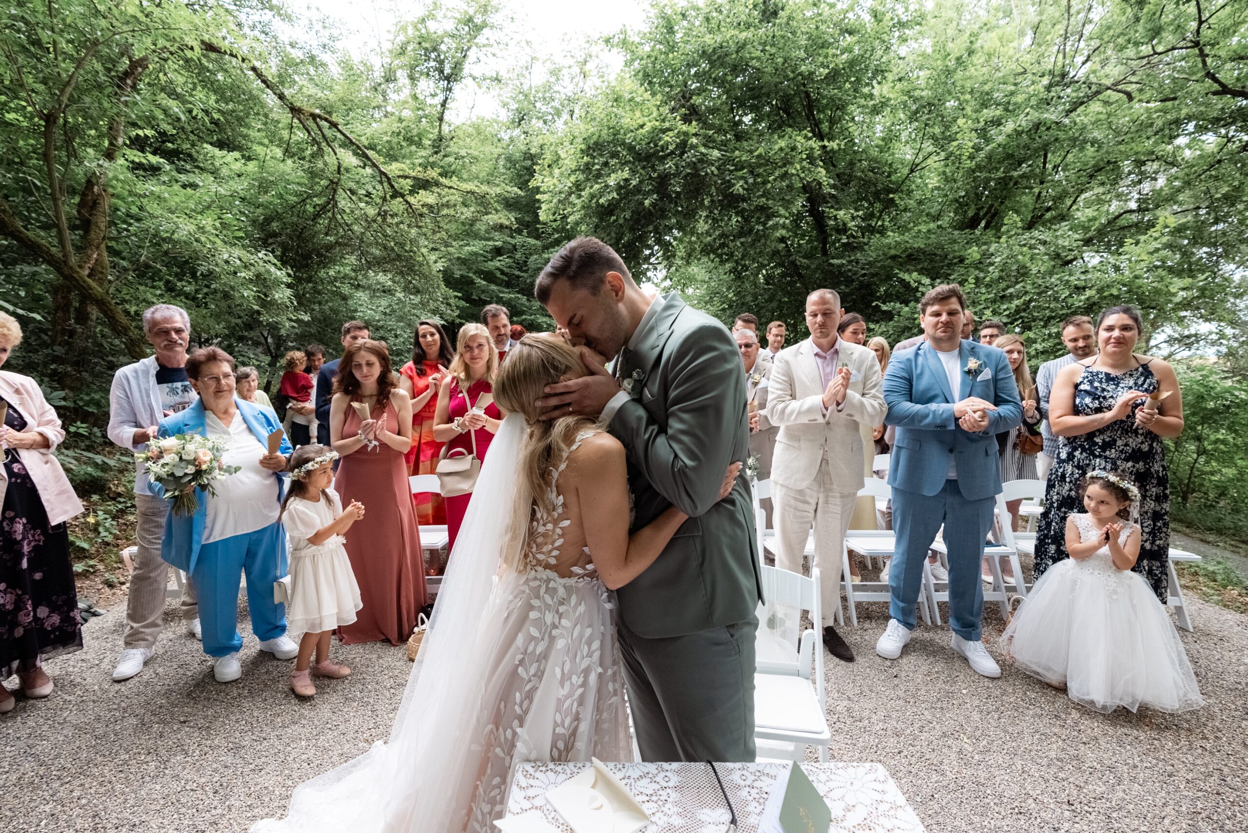 Der Tag startete mit dem Getting Ready der beiden vor Ort bevor es zum ersten großen Highlight ging. Die Villa bietet nämlich eine Besonderheit die man selten findet: Eine freie standesamtliche Trauung direkt auf einer Waldlichtung. Umgeben von hohen Bäumen und Natur gaben sich die beiden hier das Ja-Wort. Diese Mischung aus eleganter Villa und wilder Natur macht den Ort so spannend.