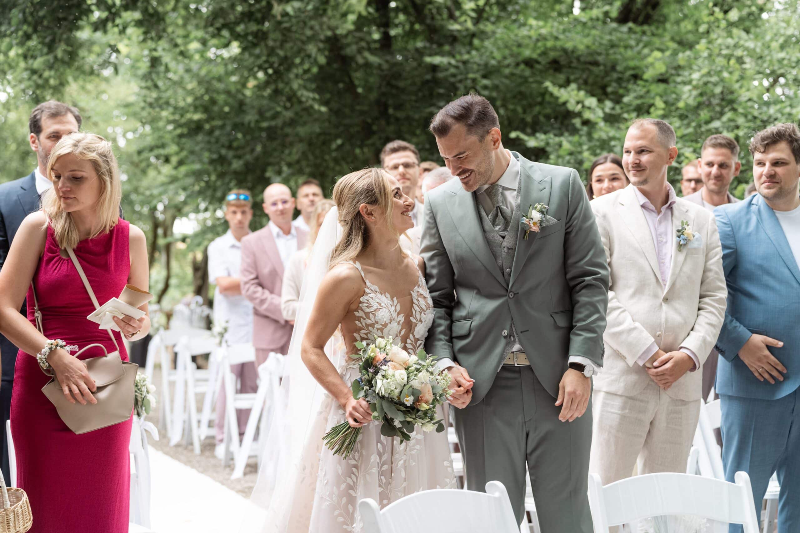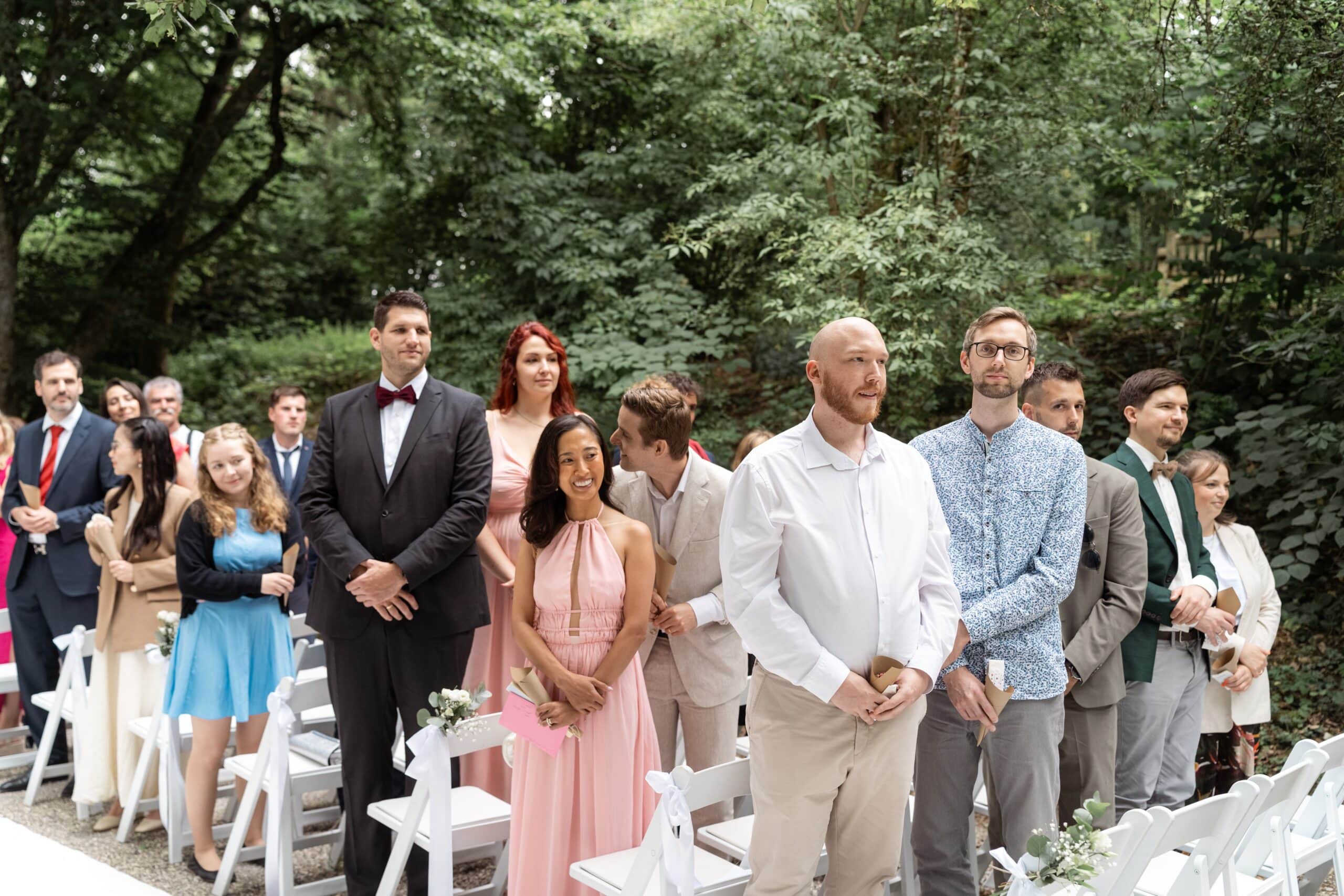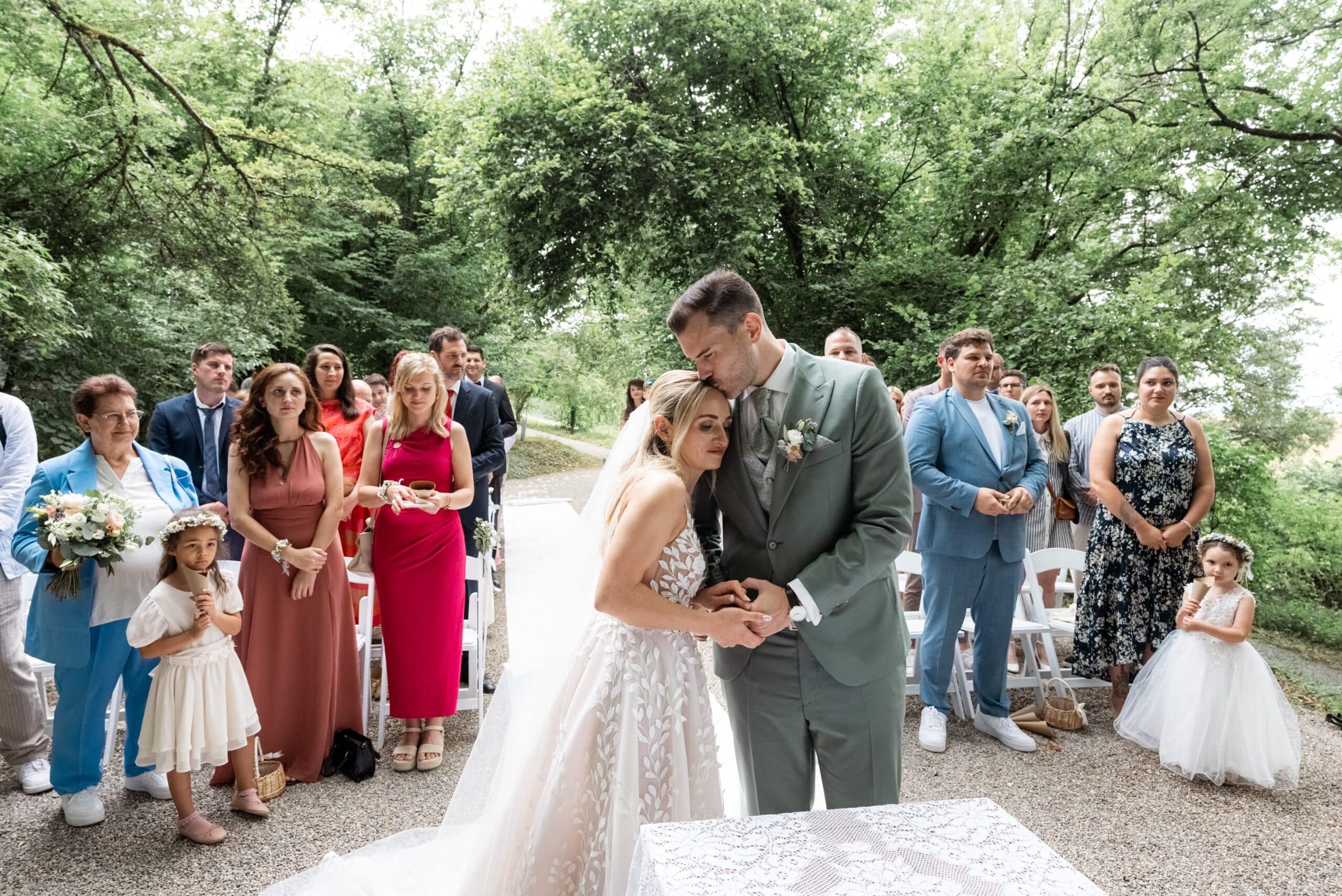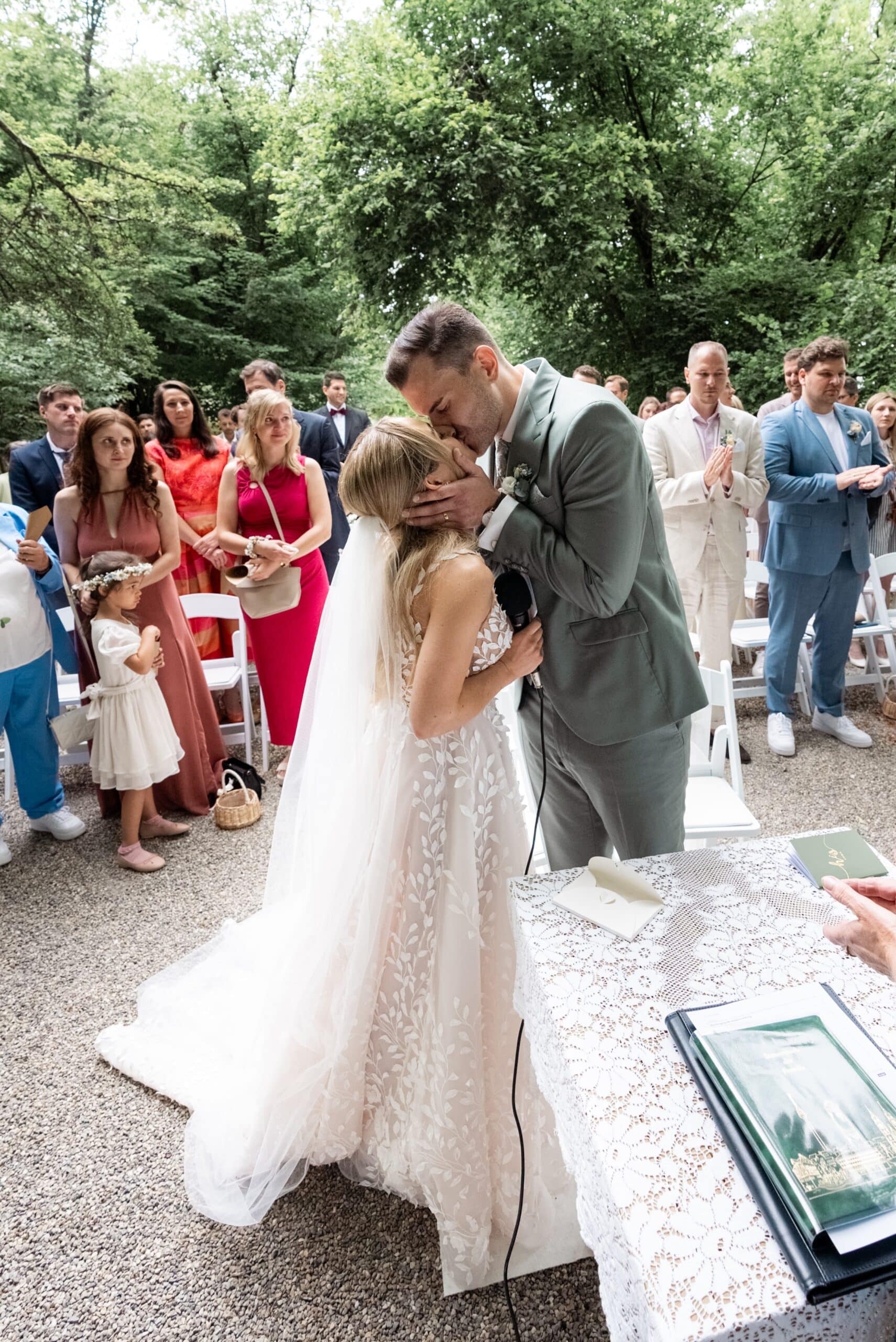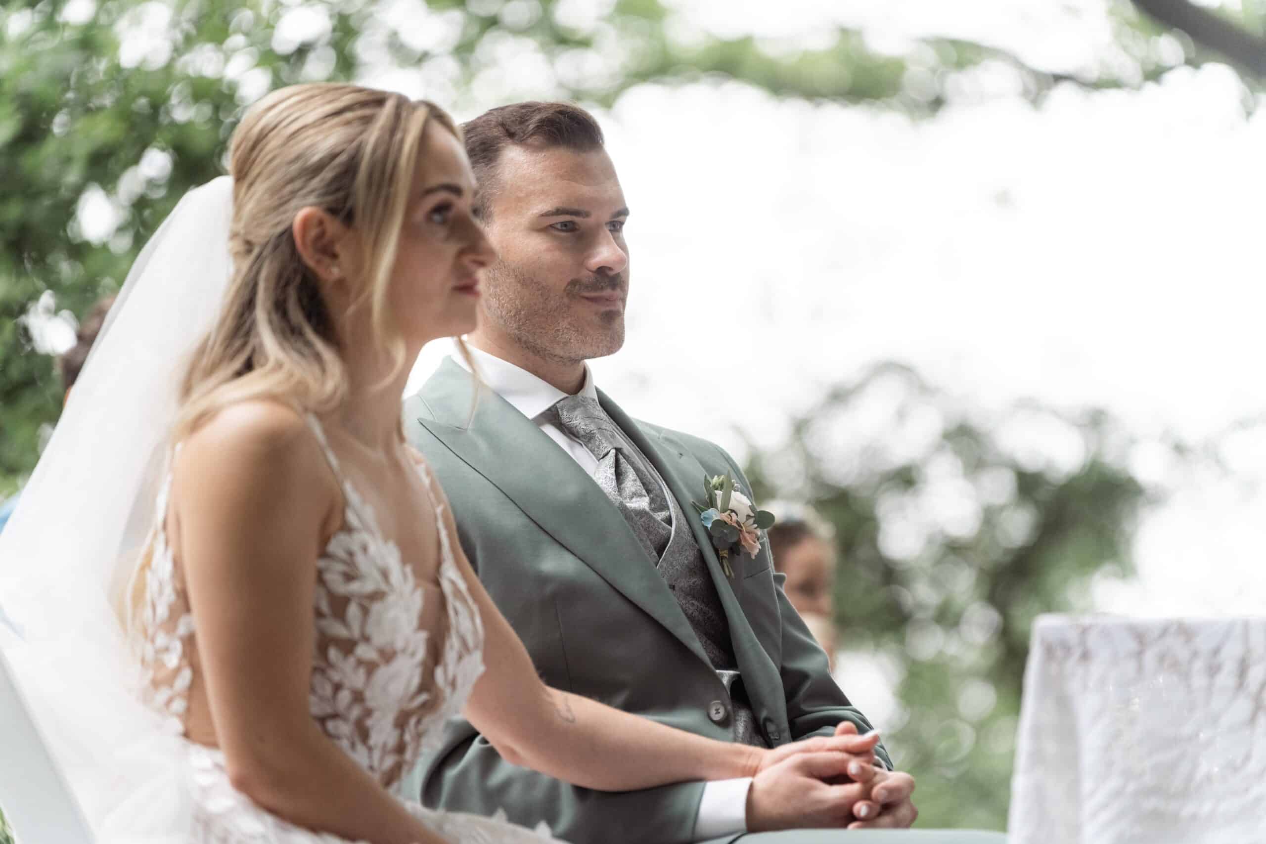 Der Tag startete mit dem Getting Ready der beiden vor Ort bevor es zum ersten großen Highlight ging. Die Villa bietet nämlich eine Besonderheit die man selten findet: Eine freie standesamtliche Trauung direkt auf einer Waldlichtung. Umgeben von hohen Bäumen und Natur gaben sich die beiden hier das Ja-Wort. Diese Mischung aus eleganter Villa und wilder Natur macht den Ort so spannend.