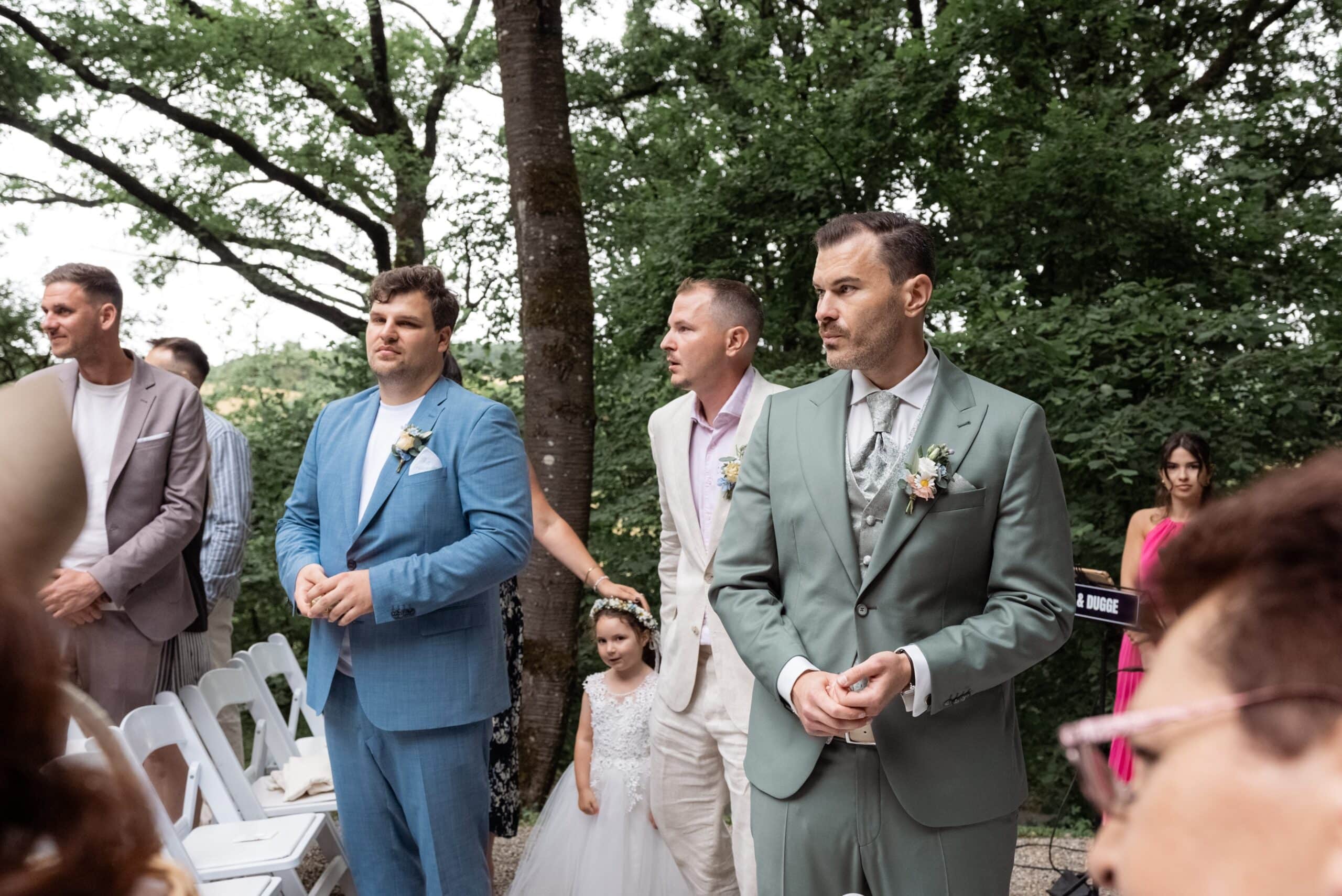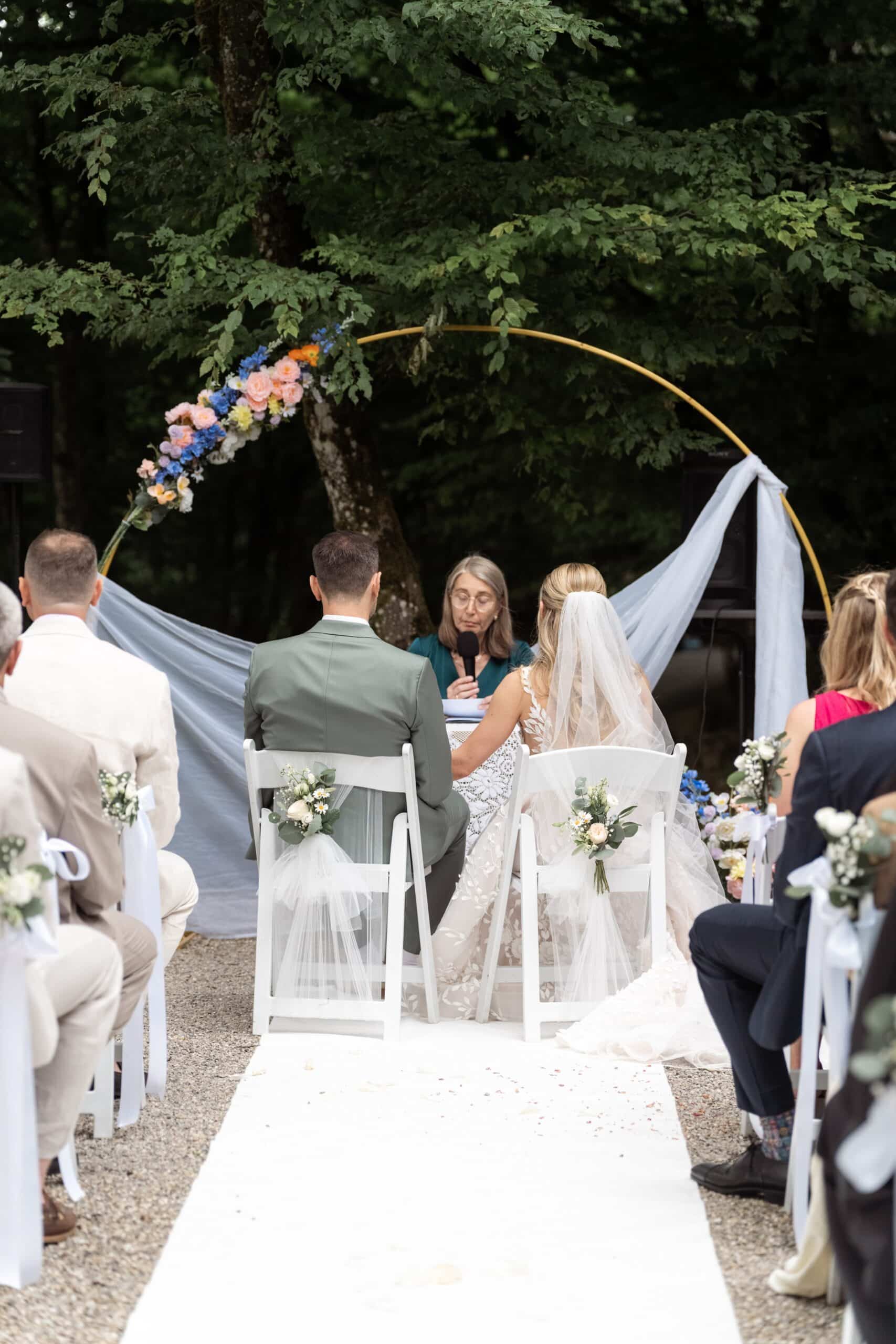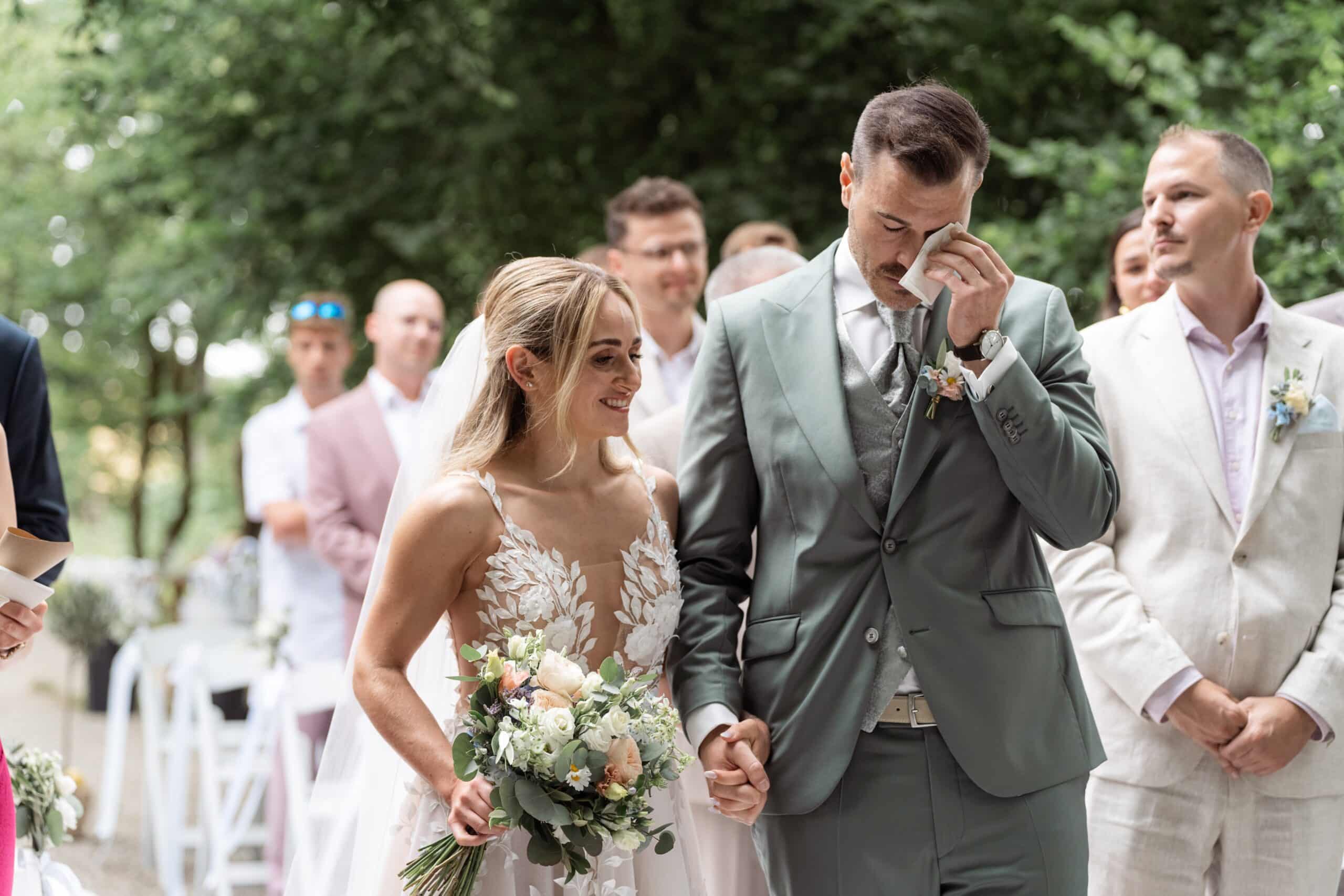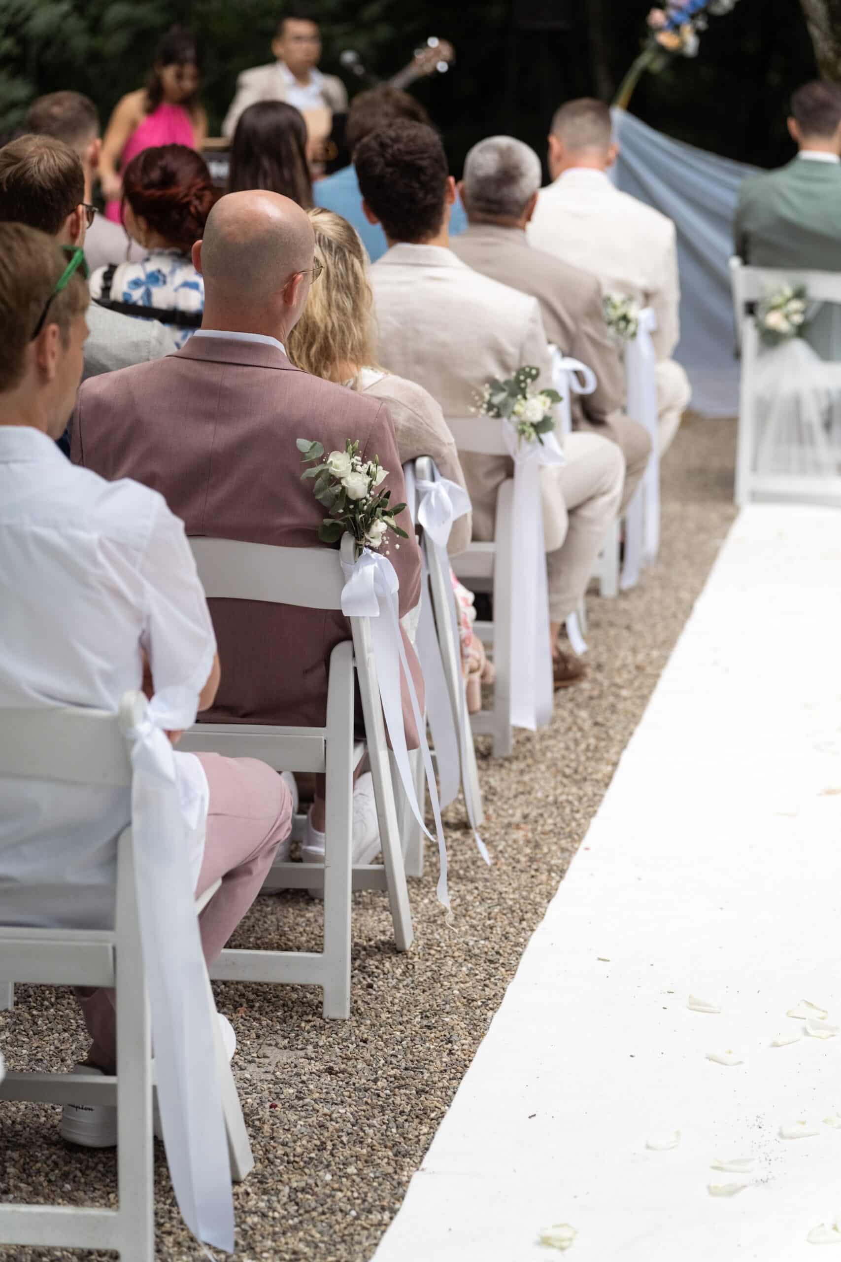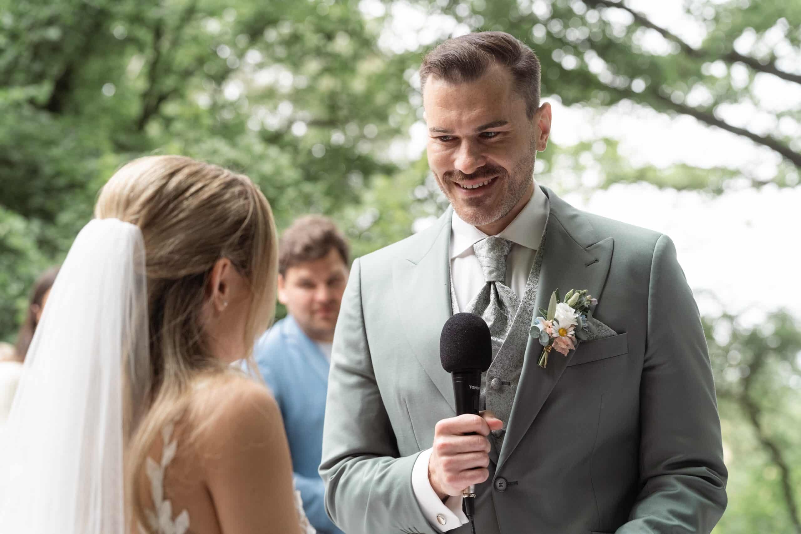 Der Tag startete mit dem Getting Ready der beiden vor Ort bevor es zum ersten großen Highlight ging. Die Villa bietet nämlich eine Besonderheit die man selten findet: Eine freie standesamtliche Trauung direkt auf einer Waldlichtung. Umgeben von hohen Bäumen und Natur gaben sich die beiden hier das Ja-Wort. Diese Mischung aus eleganter Villa und wilder Natur macht den Ort so spannend.