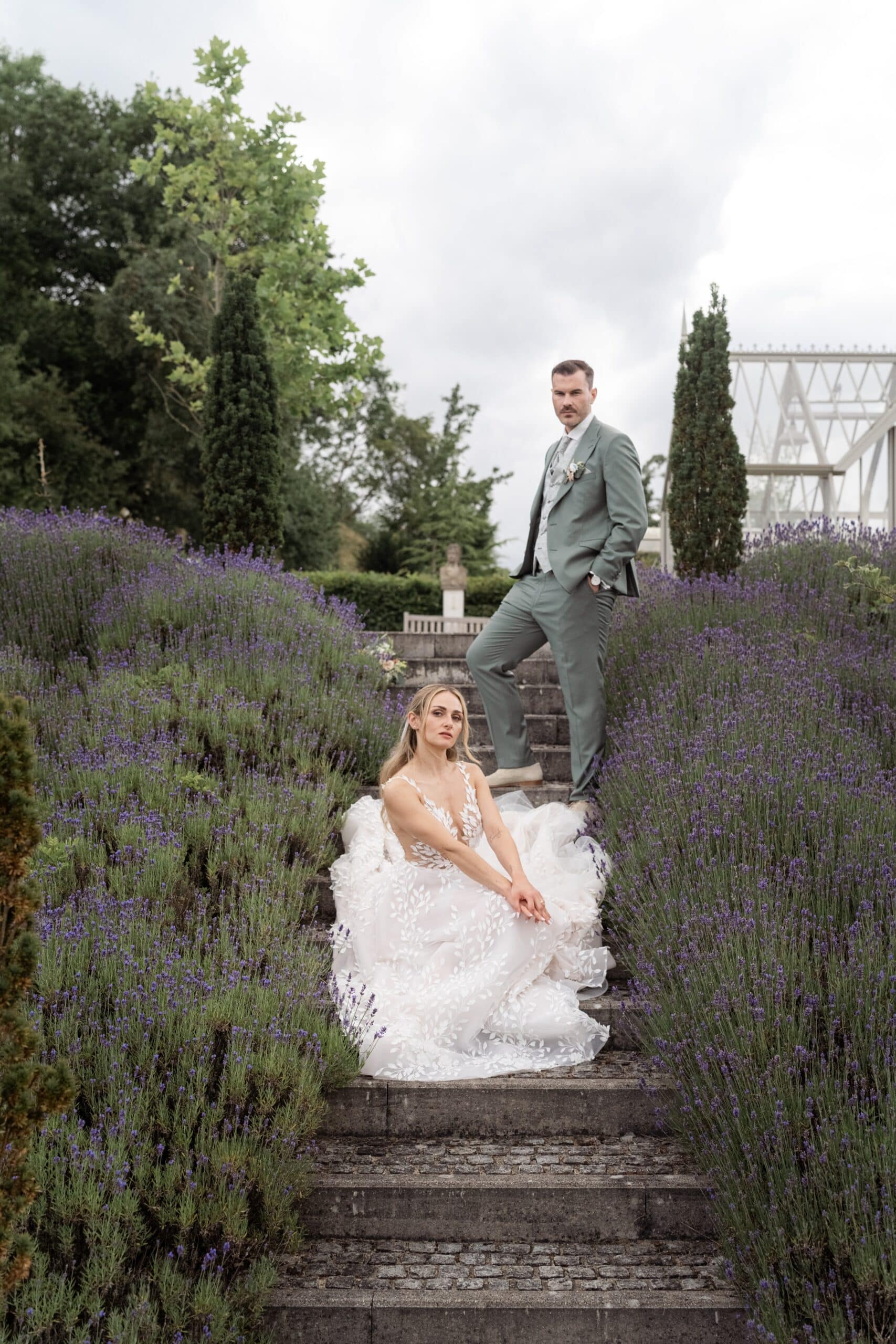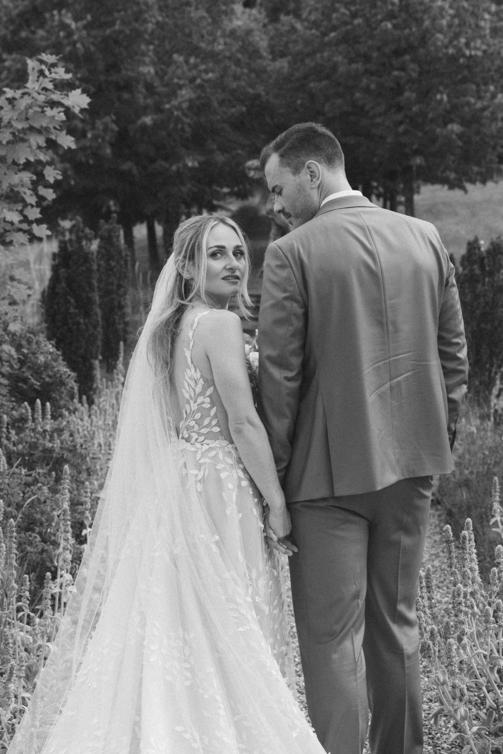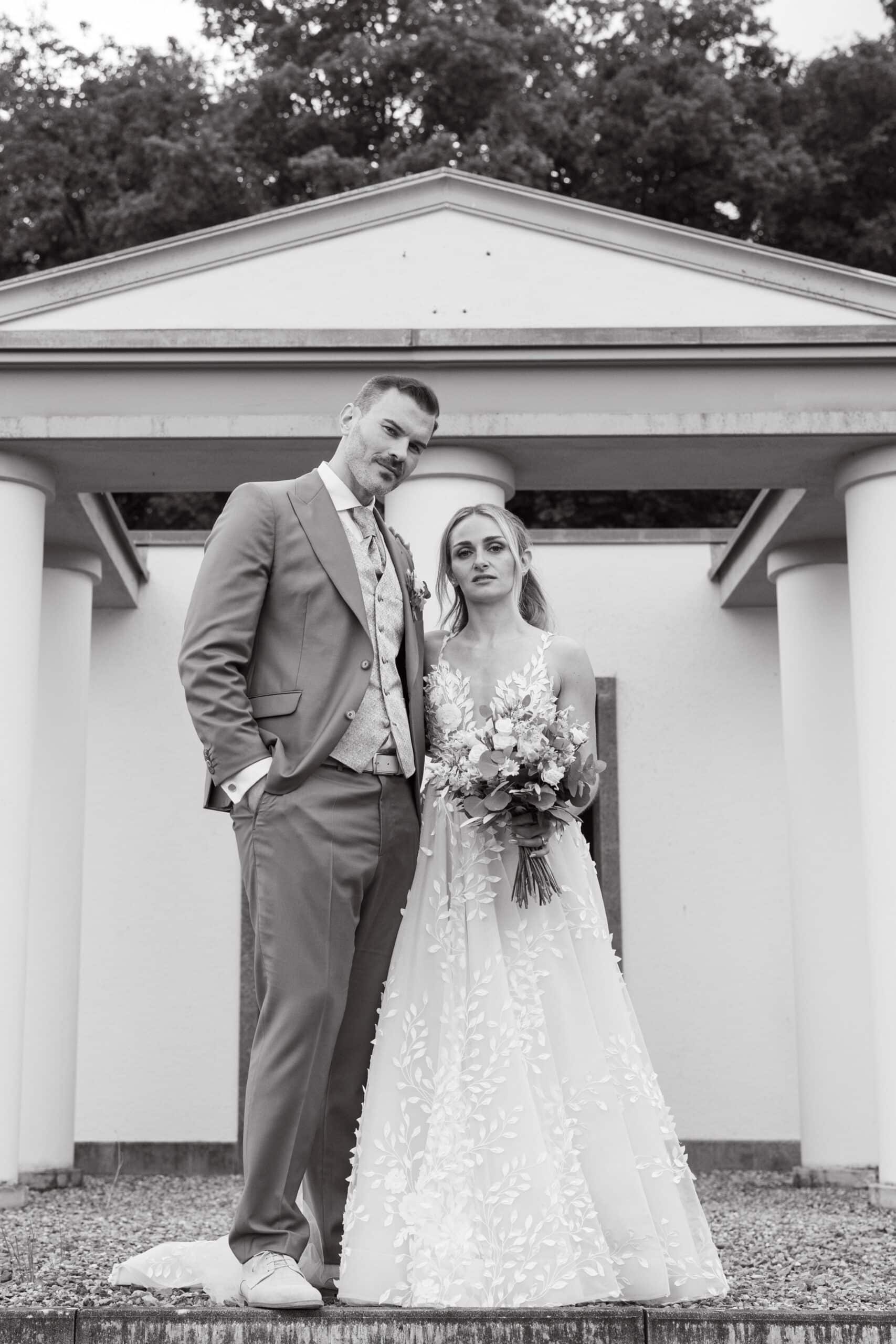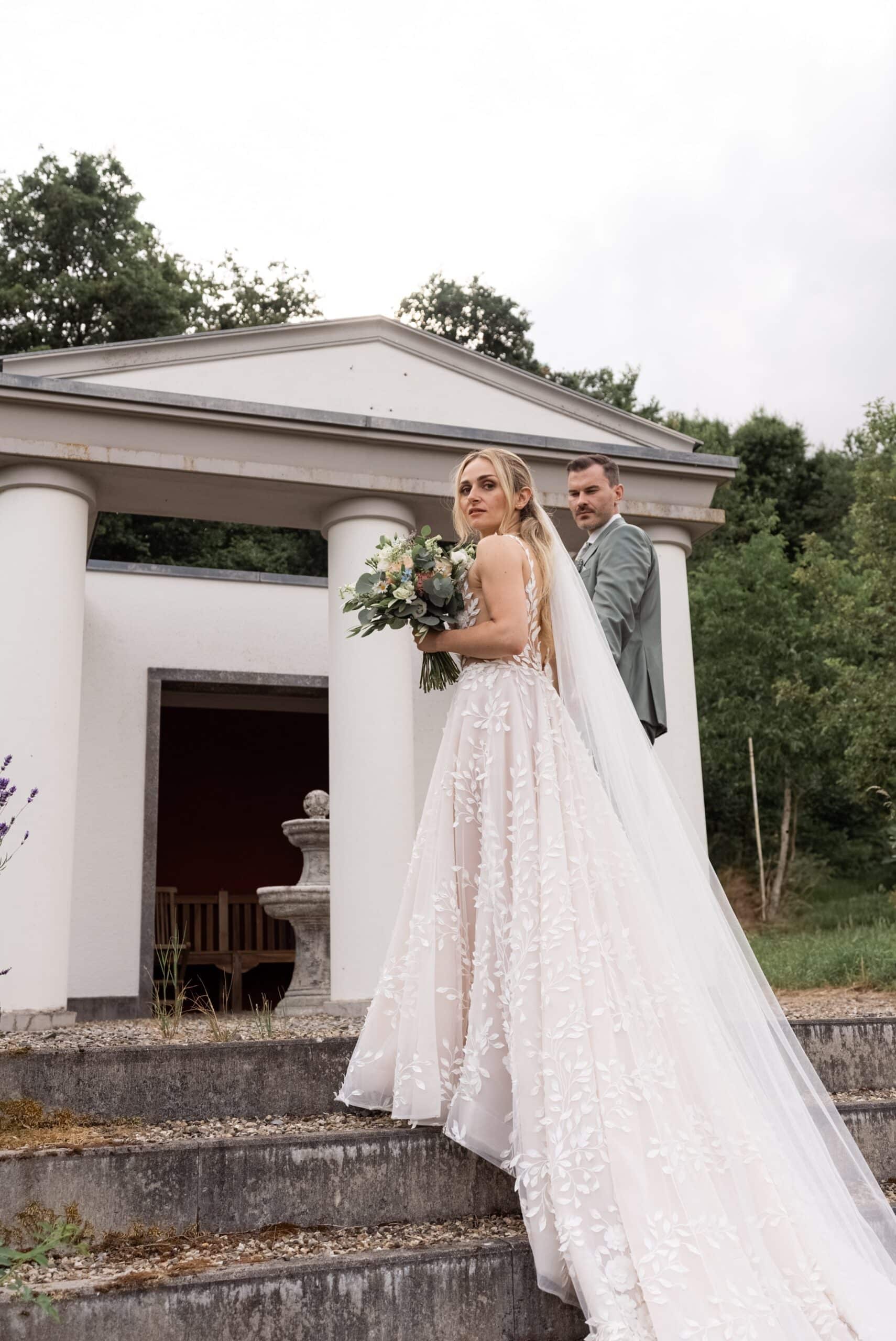 Nach den Gratulationen und dem Sektempfang im Garten haben wir die weitläufigen Anlagen für das Paarshooting genutzt. Die Gärten der Villa Oriental sind riesig und wunderschön angelegt. Überall findet man symmetrische Wege, Wasserbecken und mediterrane Pflanzen die uns eine perfekte Kulisse für den Editorial Look geboten haben. Wir konnten hier Bilder kreieren die zeitlos und elegant wirken.