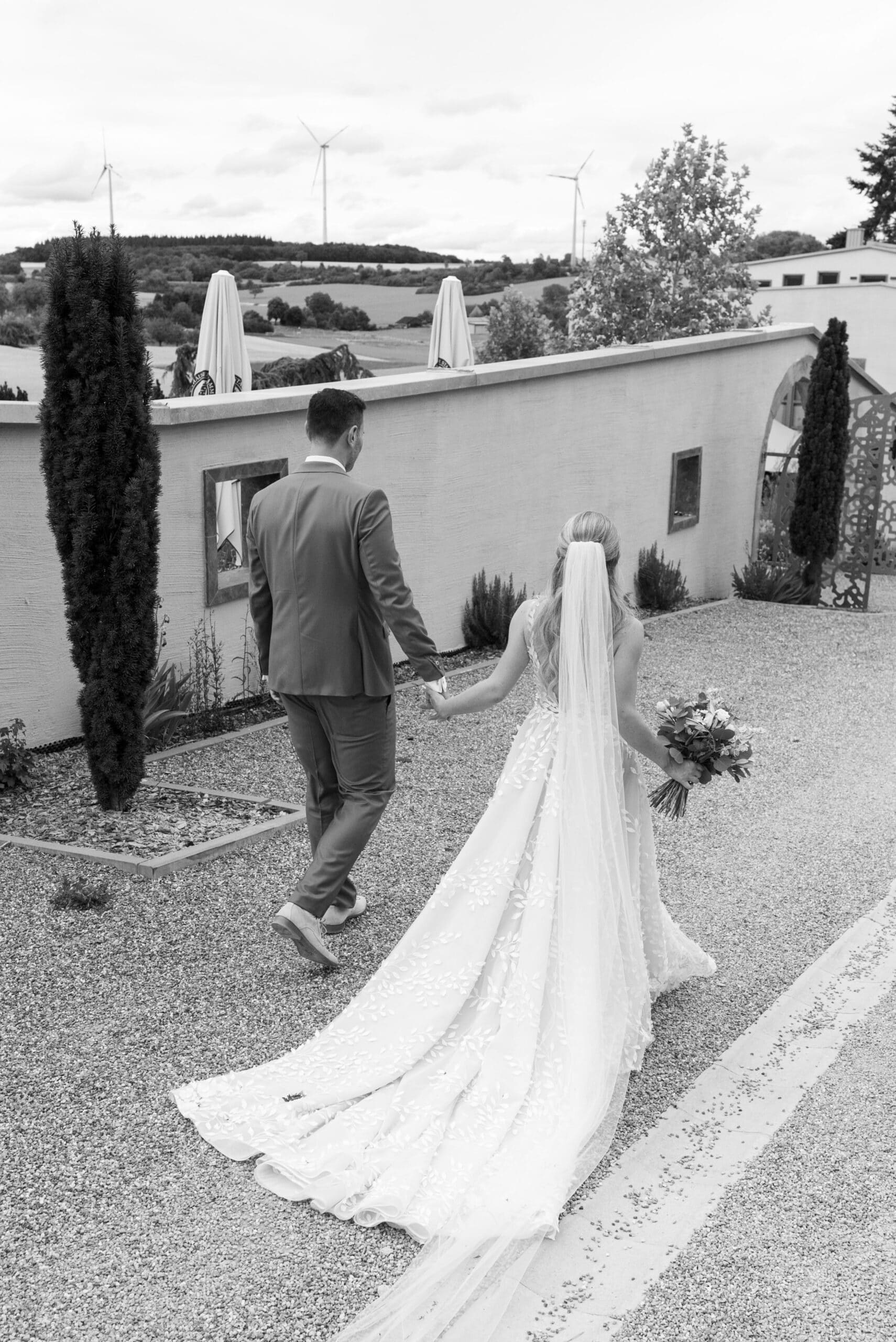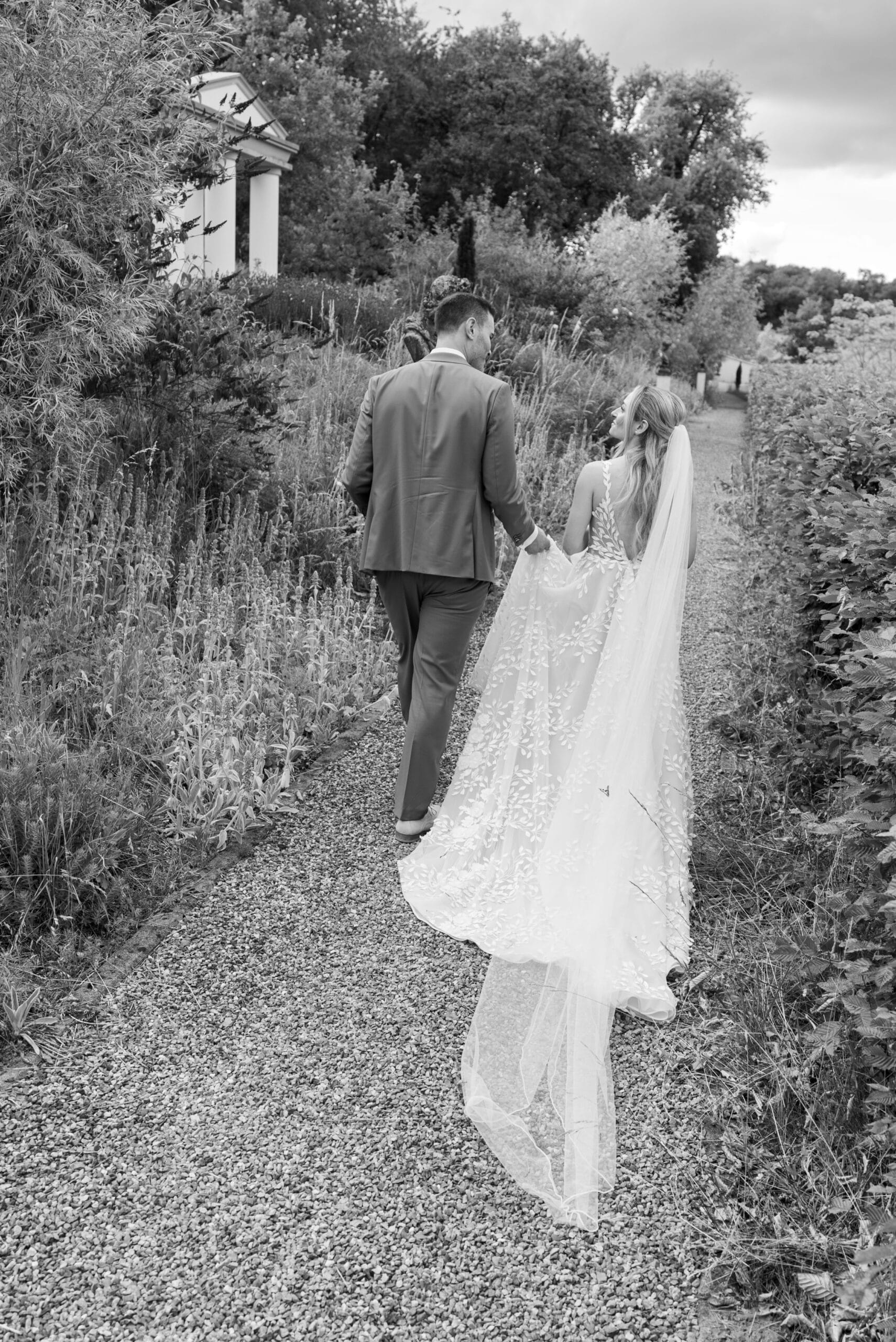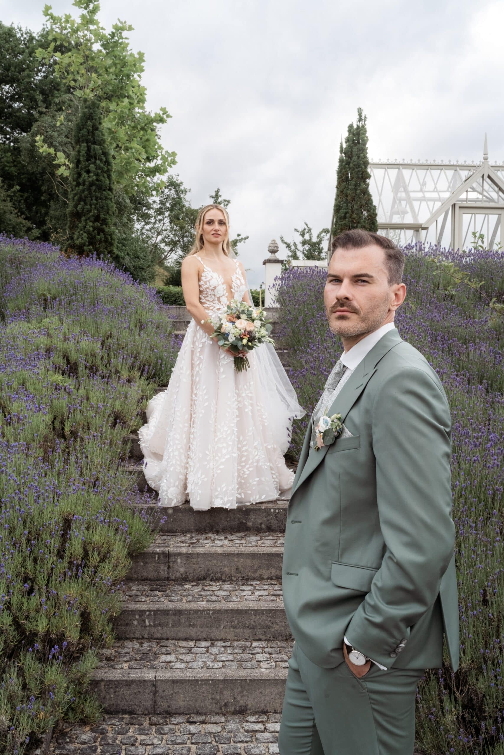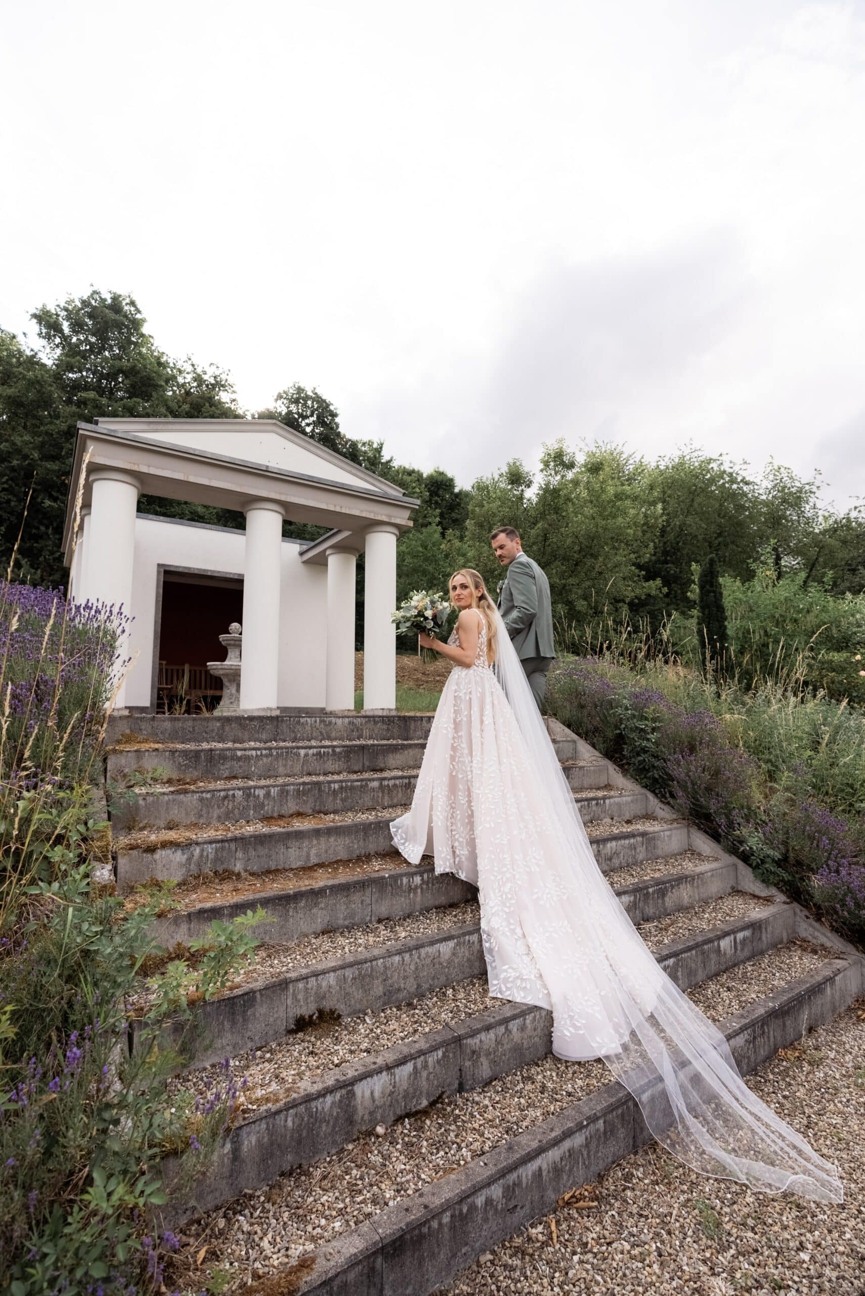 Nach den Gratulationen und dem Sektempfang im Garten haben wir die weitläufigen Anlagen für das Paarshooting genutzt. Die Gärten der Villa Oriental sind riesig und wunderschön angelegt. Überall findet man symmetrische Wege, Wasserbecken und mediterrane Pflanzen die uns eine perfekte Kulisse für den Editorial Look geboten haben. Wir konnten hier Bilder kreieren die zeitlos und elegant wirken.