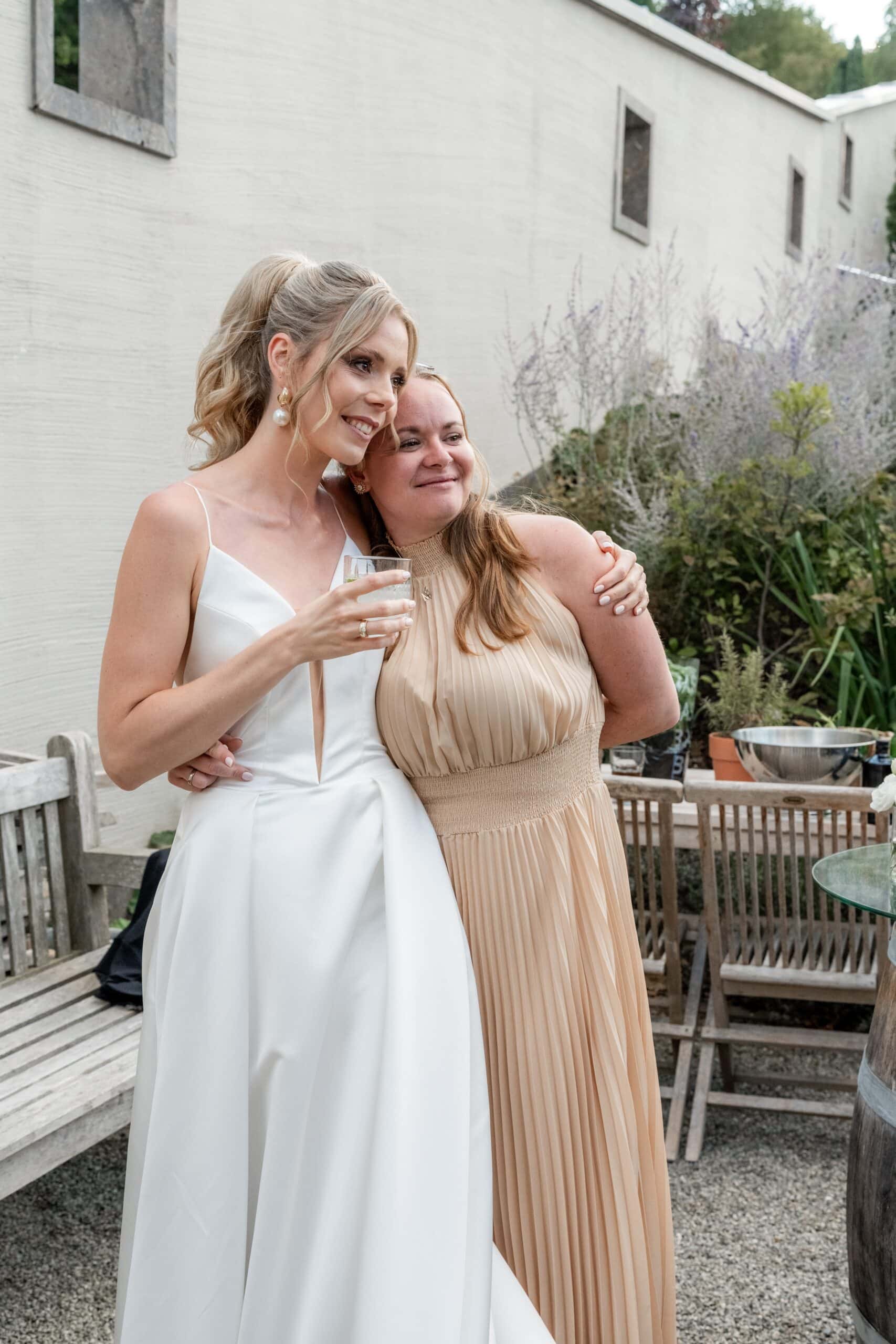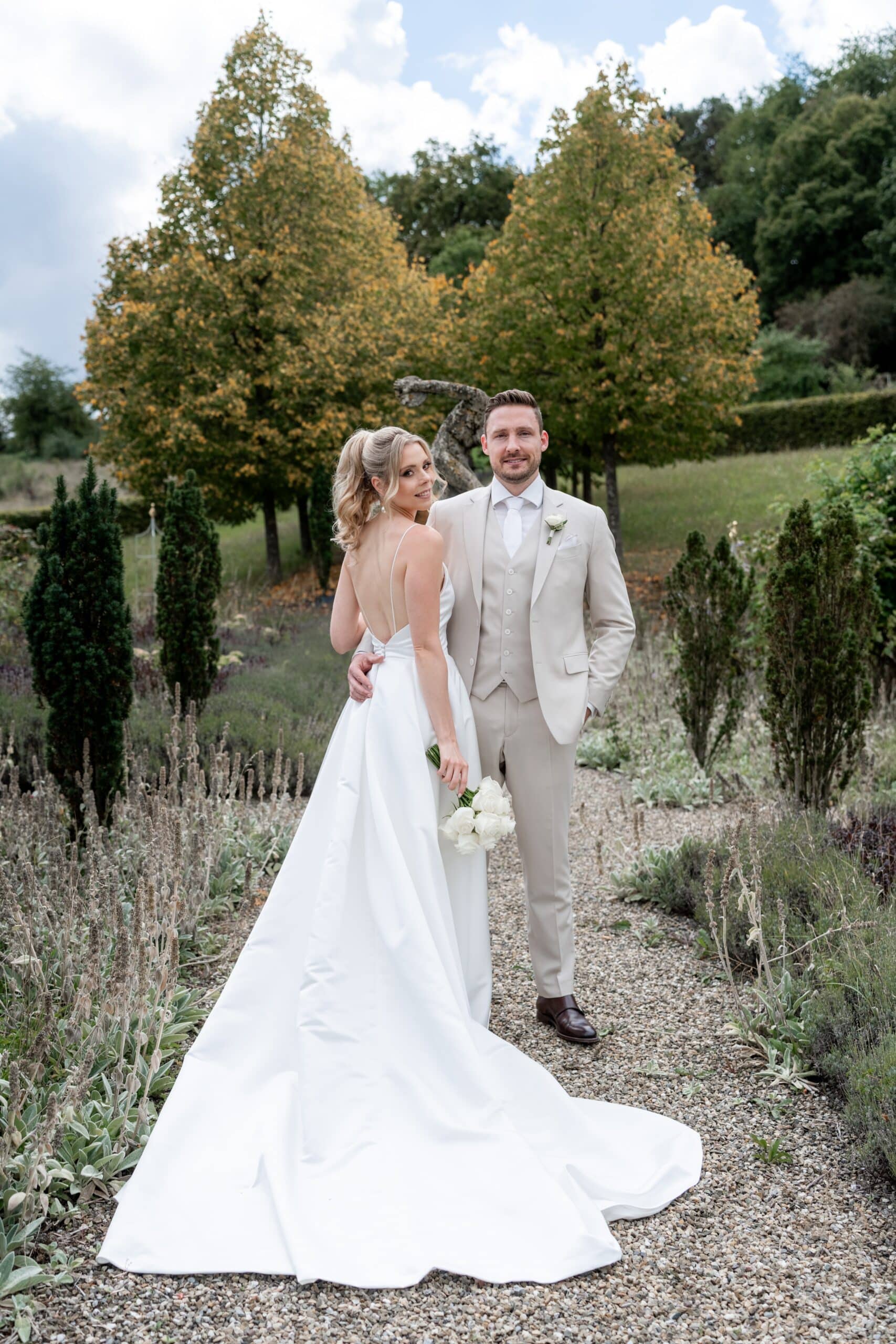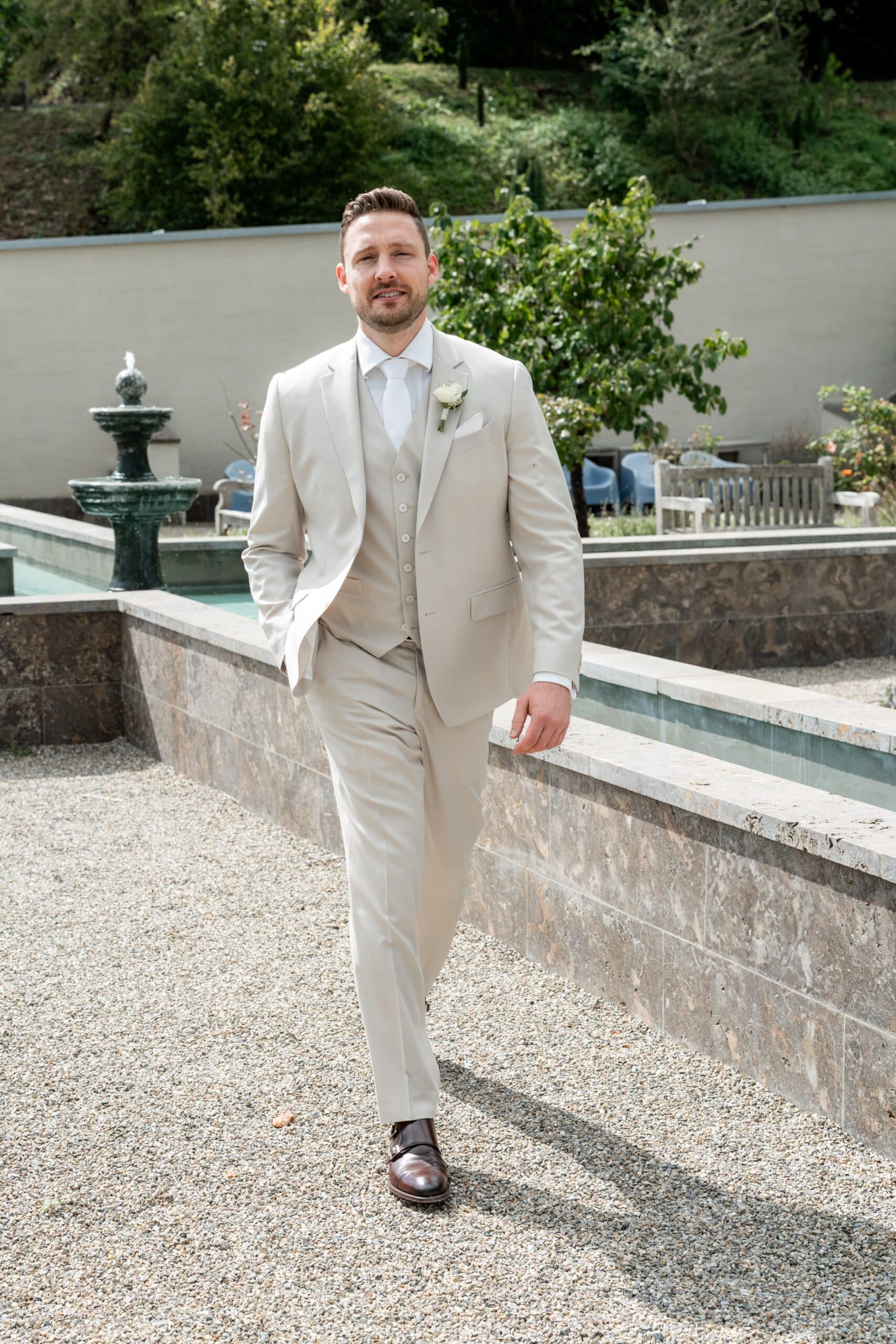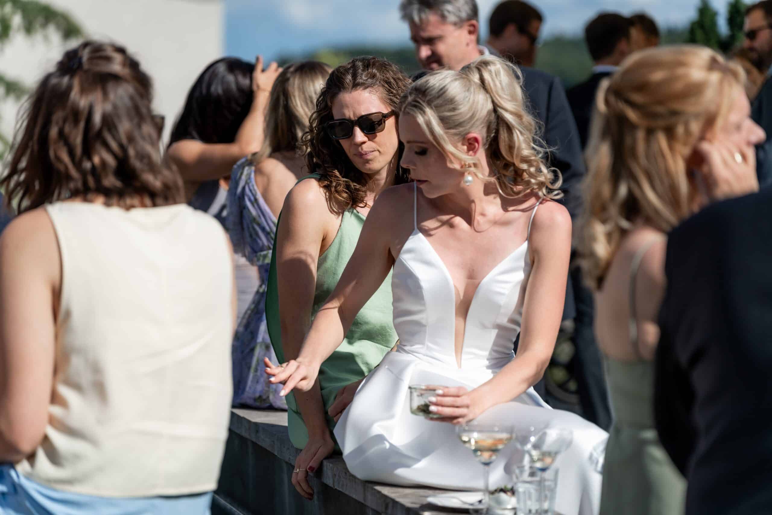 Die Villa mit ihren hellen Terrassen warmen Farben und dem offenen Garten passte perfekt zu ihrem Stil. Alles war in weichen Weißtönen gehalten von den Blumen über die Tischdekoration bis zu Pias modernem Kleid das im warmen Licht wunderschön zur Geltung kam. Dazu kam ein klarer moderner Editorial Look der dem Tag eine besondere Ästhetik gegeben hat ohne künstlich oder gestellt zu wirken.