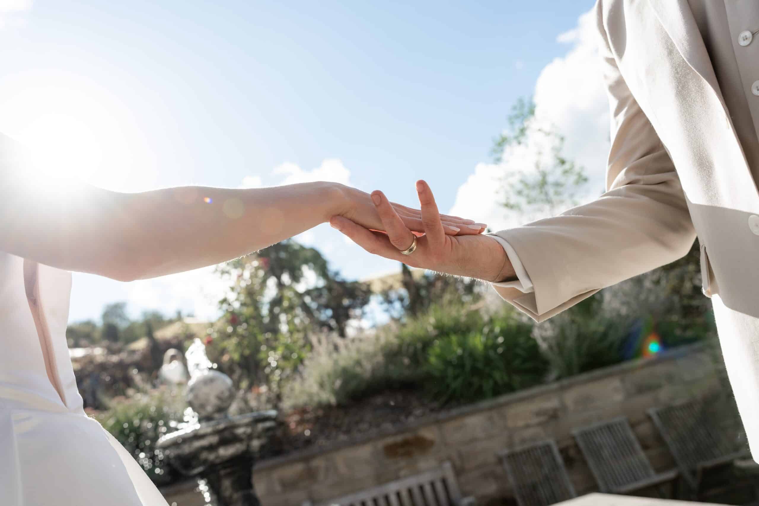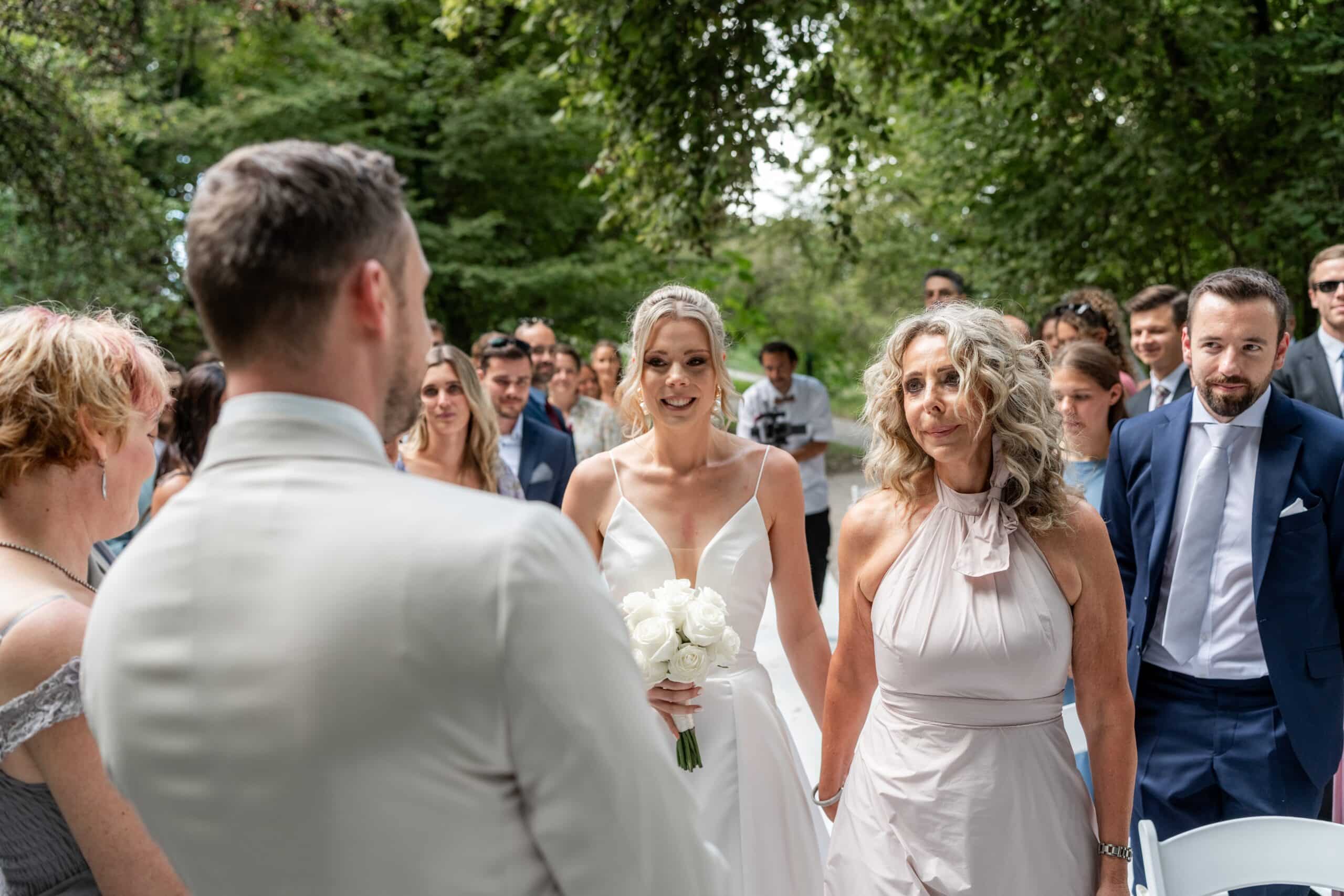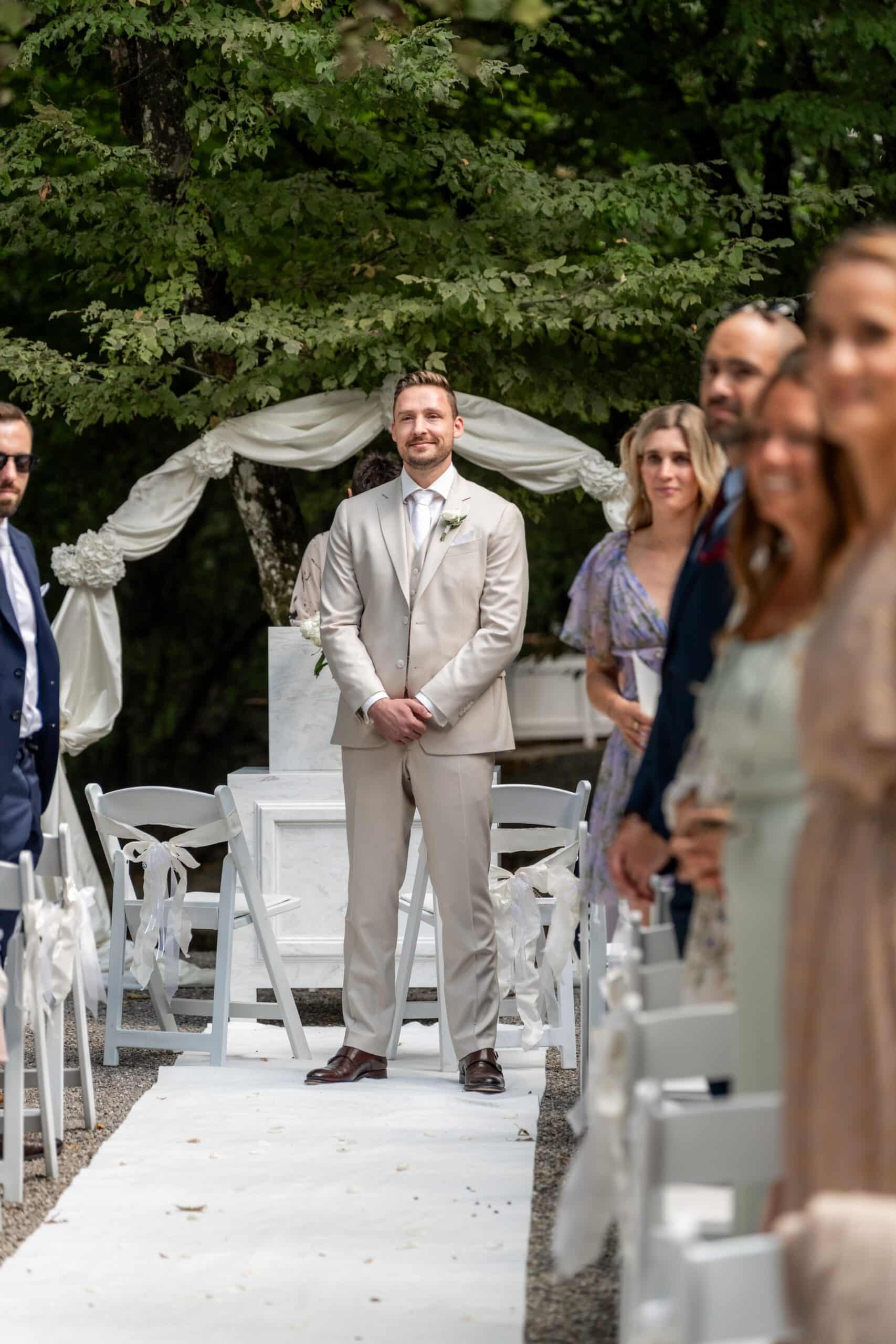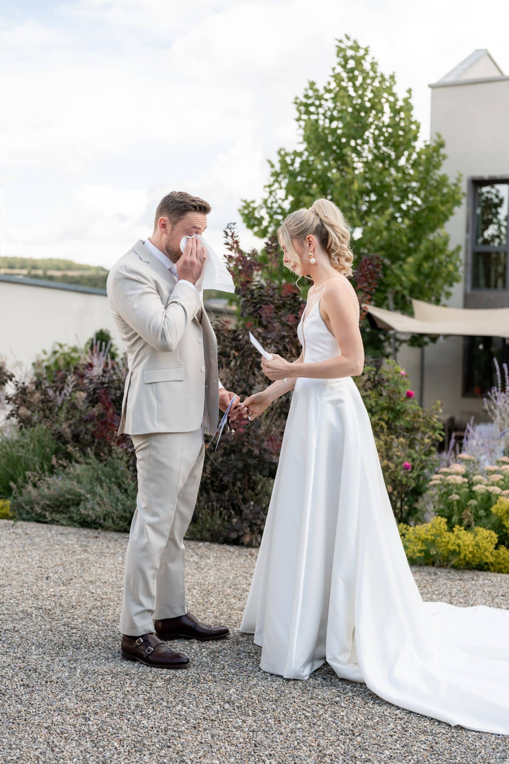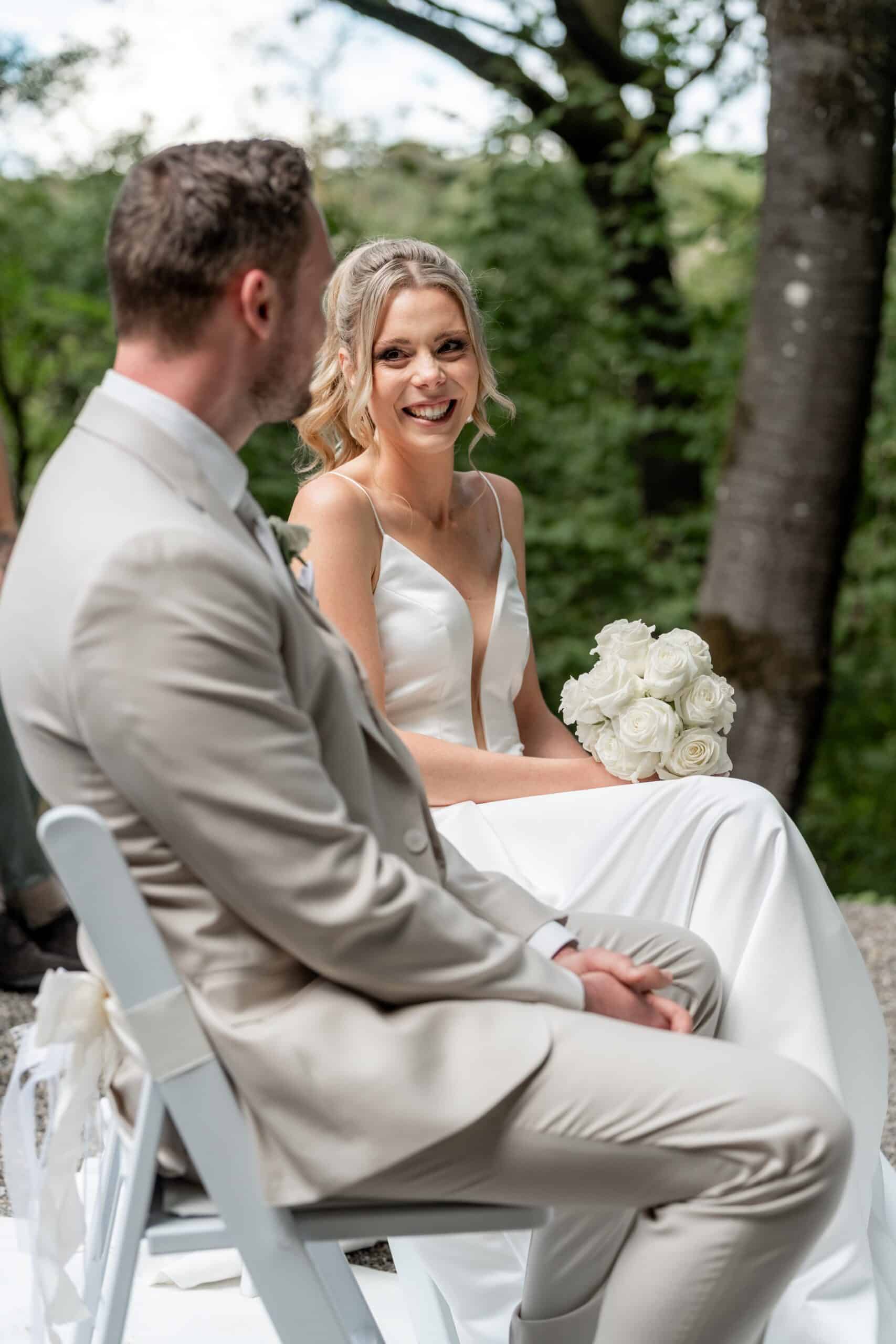 Ihre Trauung fand im Freien statt begleitet von emotionaler Musik und einem sehr persönlichen First Look bei dem sie sich gegenseitig ihre Gelübde vorgelesen haben.