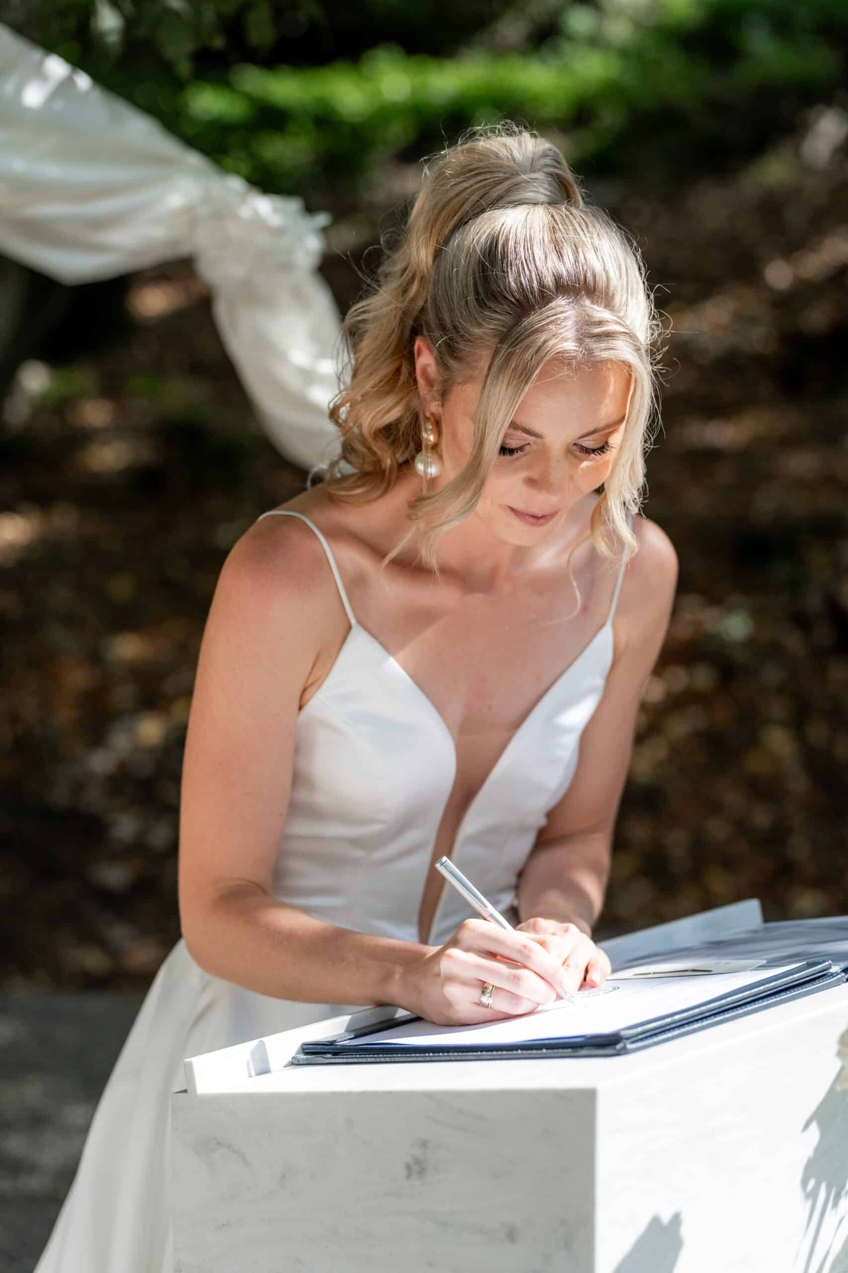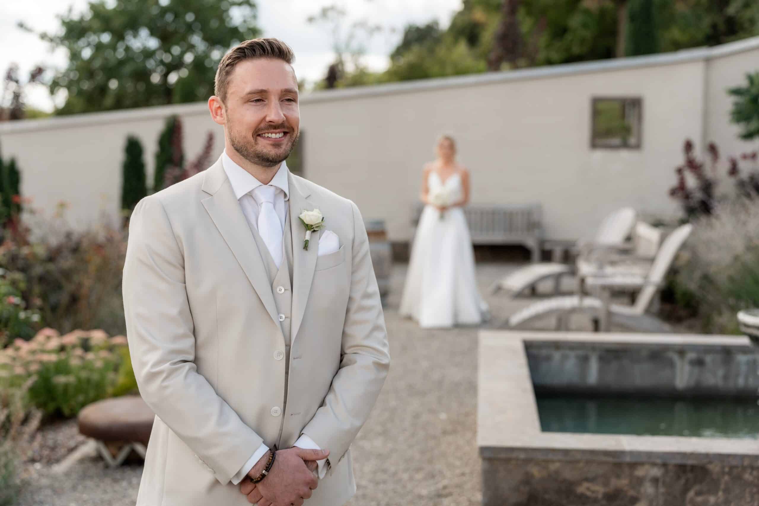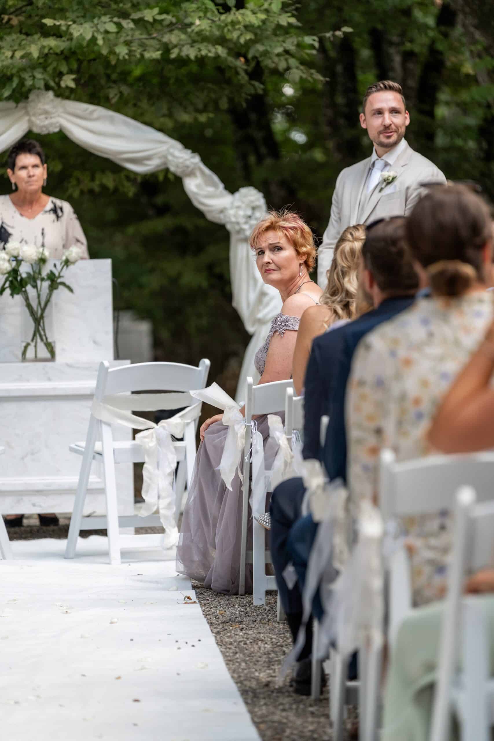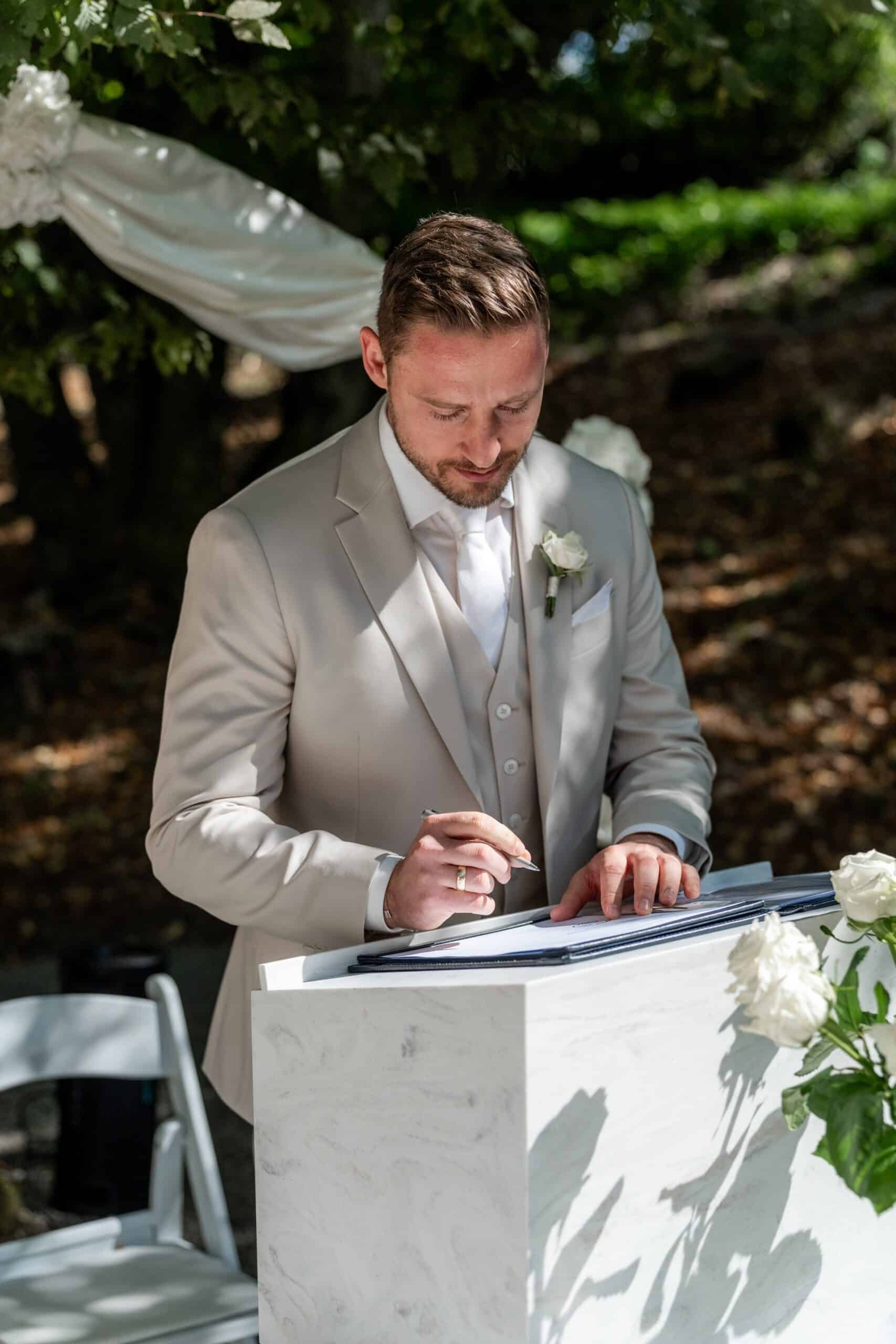 Ihre Trauung fand im Freien statt begleitet von emotionaler Musik und einem sehr persönlichen First Look bei dem sie sich gegenseitig ihre Gelübde vorgelesen haben.