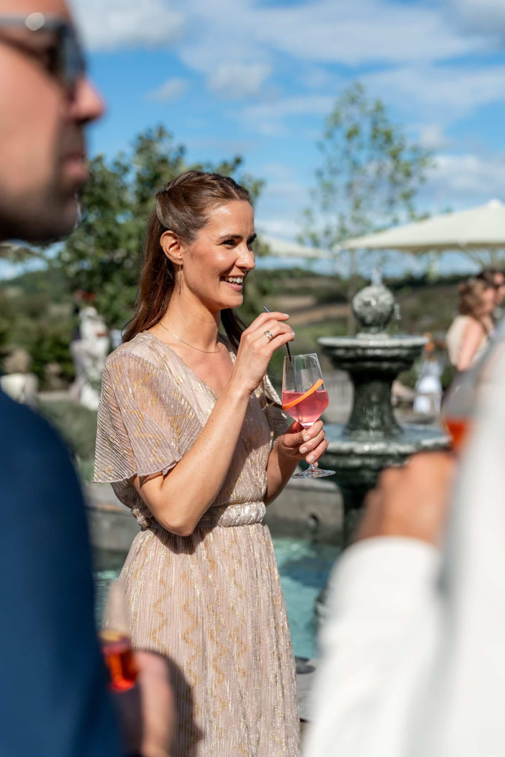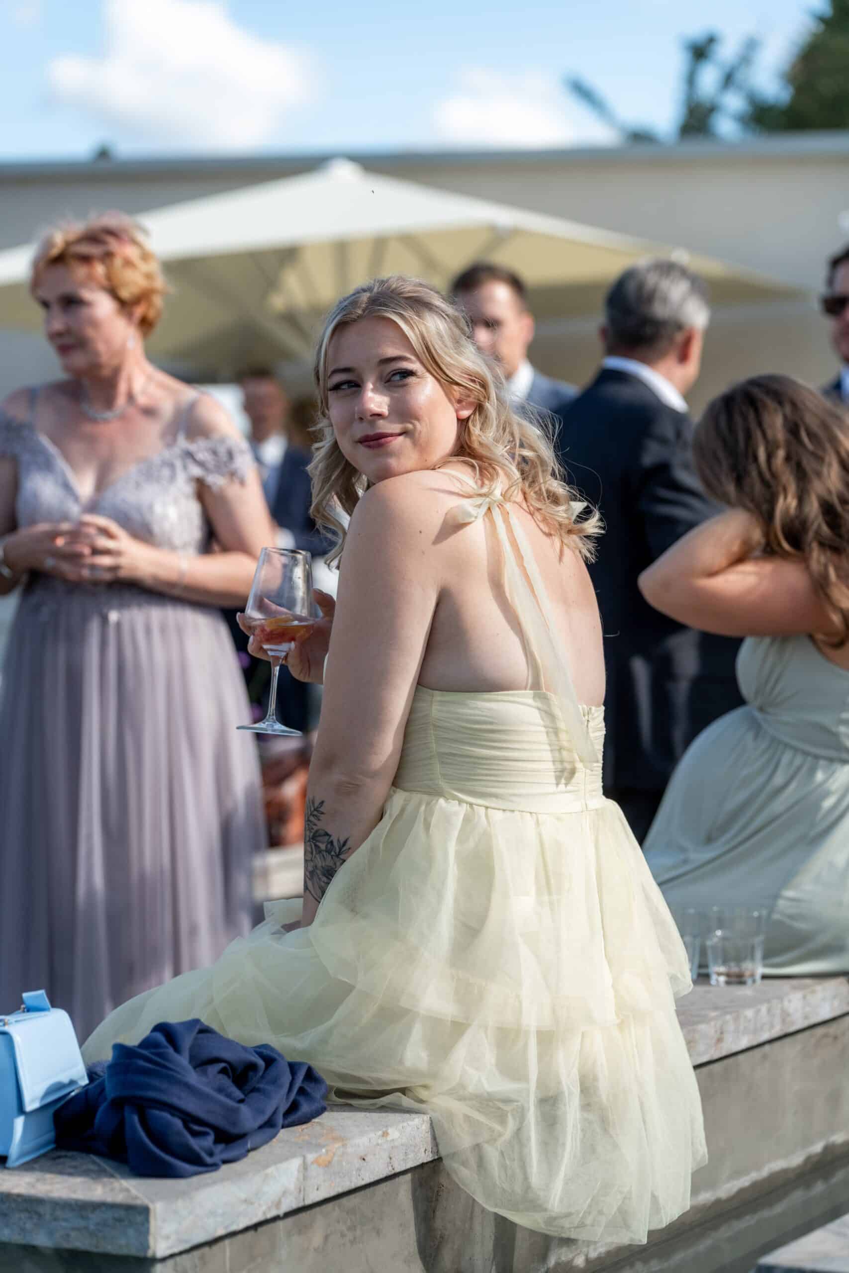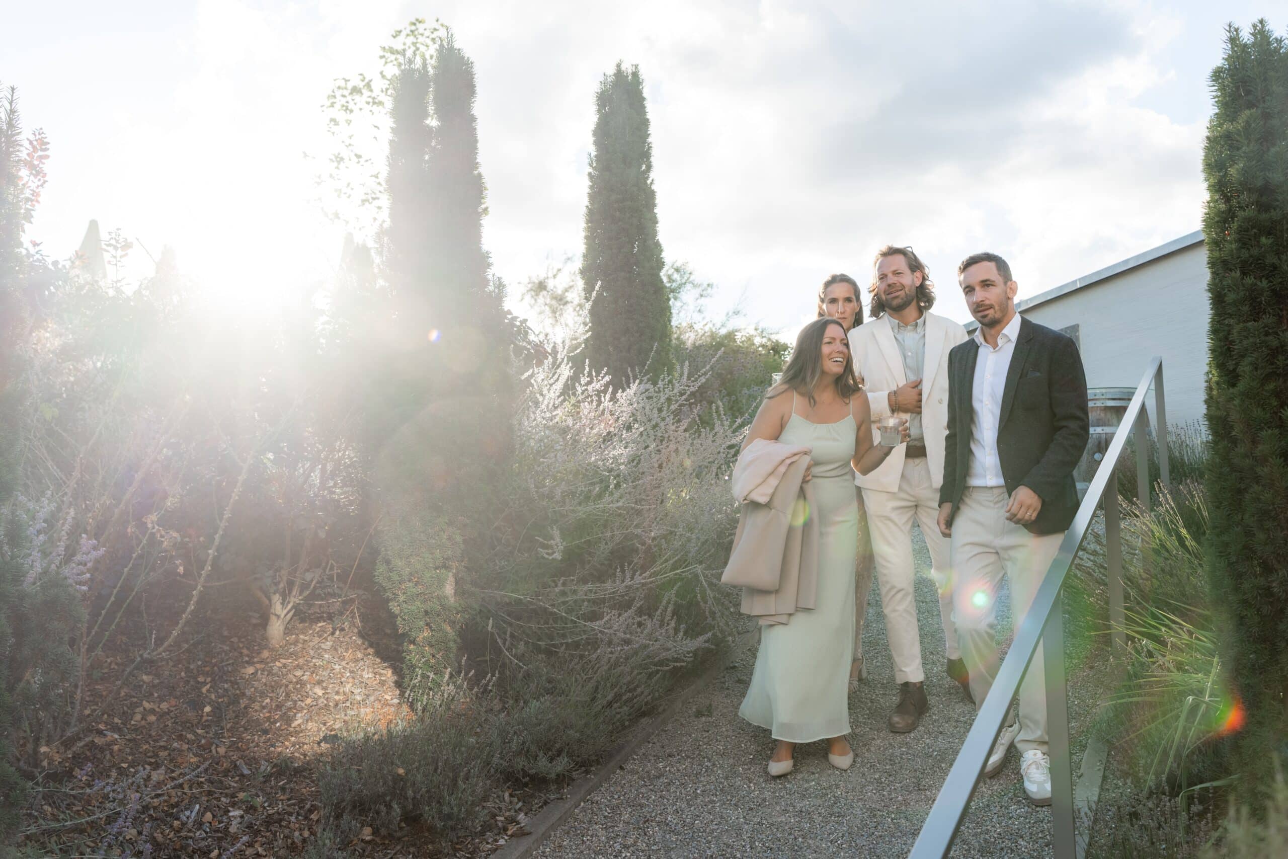 Nach der Zeremonie gab es Live Cooking über der Feuerschale sommerliche Drinks und eine Gin Bar die die Stimmung schnell nach oben gebracht hat. Die Gäste konnten sich frei bewegen und der komplette Tag fühlte sich leicht lebendig und voll echter Momente an. Für mich als Fotograf war es ein Traumtag denn die Villa Oriental bietet überall mediterrane Kulissen und warmes natürliches Licht das diesen modernen Look unterstützt und gleichzeitig viel Raum für natürliche Editorial Portraits bietet.