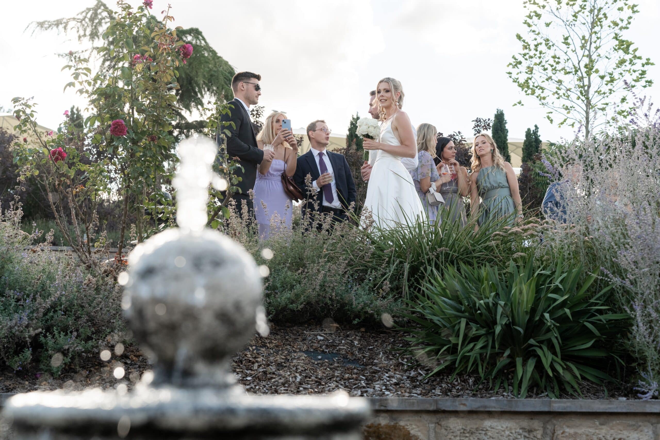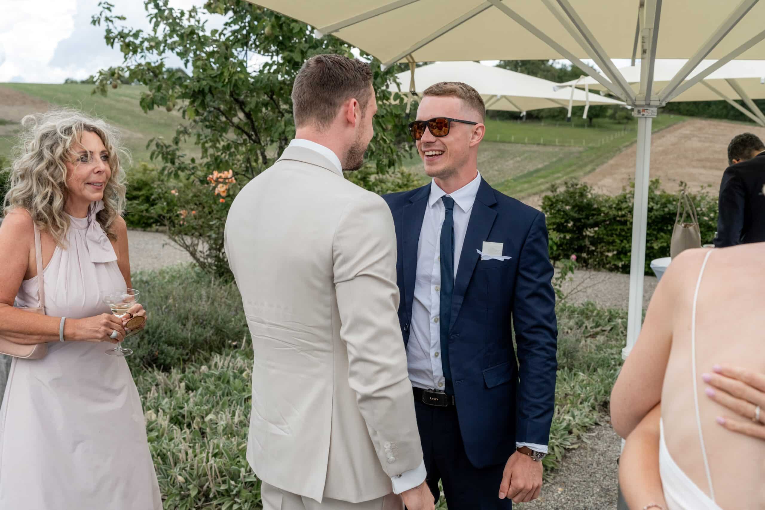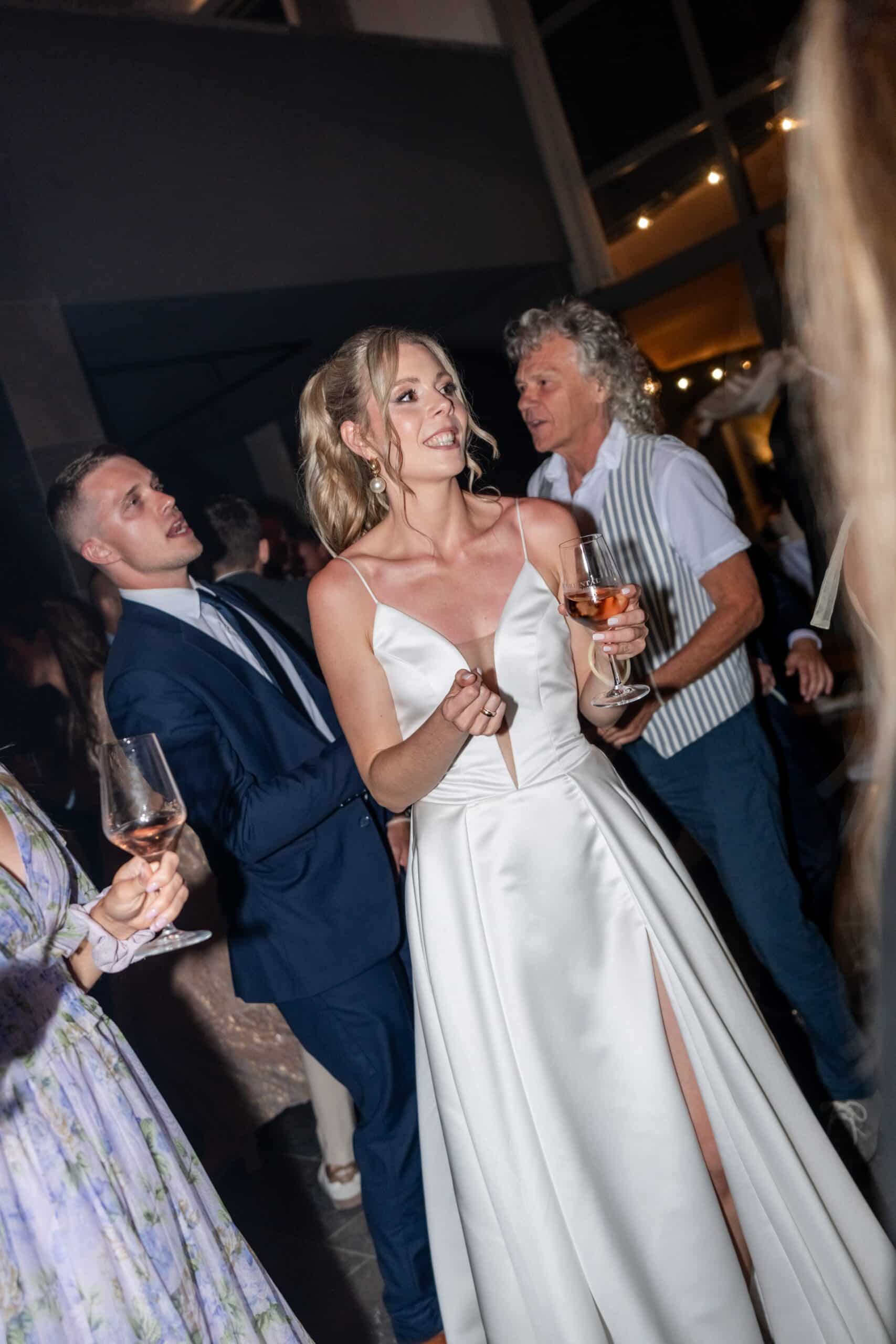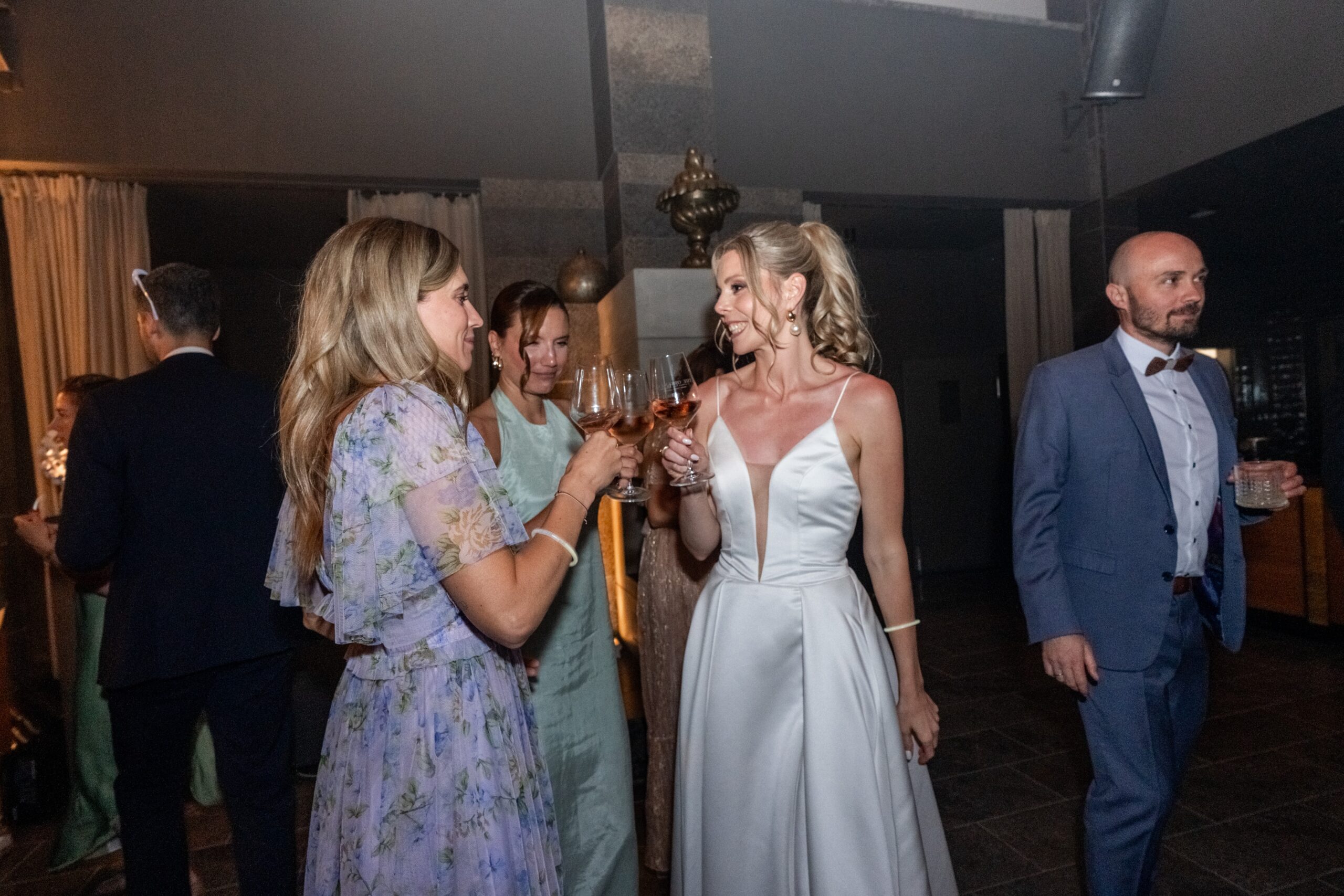 Nach der Zeremonie gab es Live Cooking über der Feuerschale sommerliche Drinks und eine Gin Bar die die Stimmung schnell nach oben gebracht hat. Die Gäste konnten sich frei bewegen und der komplette Tag fühlte sich leicht lebendig und voll echter Momente an. Für mich als Fotograf war es ein Traumtag denn die Villa Oriental bietet überall mediterrane Kulissen und warmes natürliches Licht das diesen modernen Look unterstützt und gleichzeitig viel Raum für natürliche Editorial Portraits bietet.
