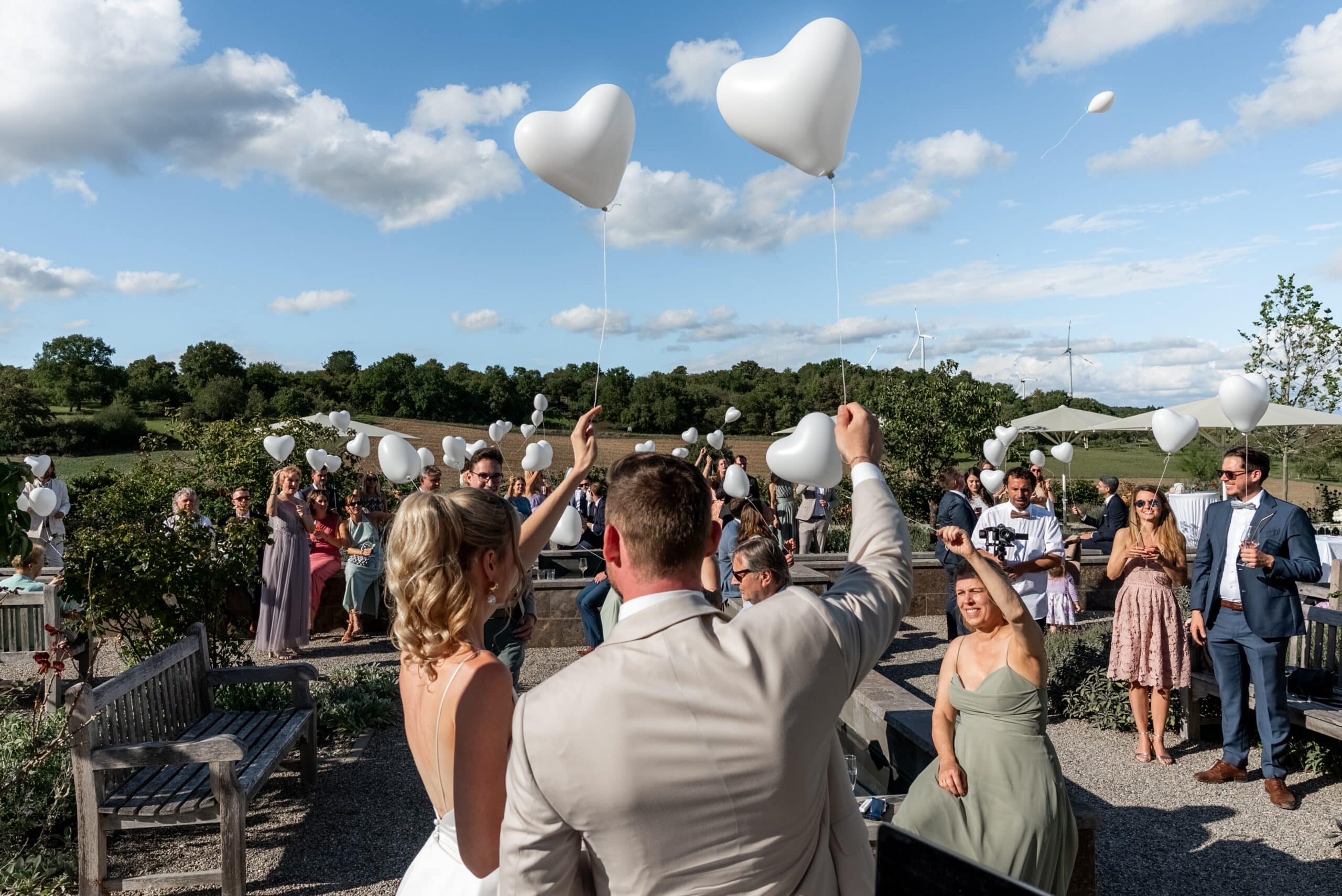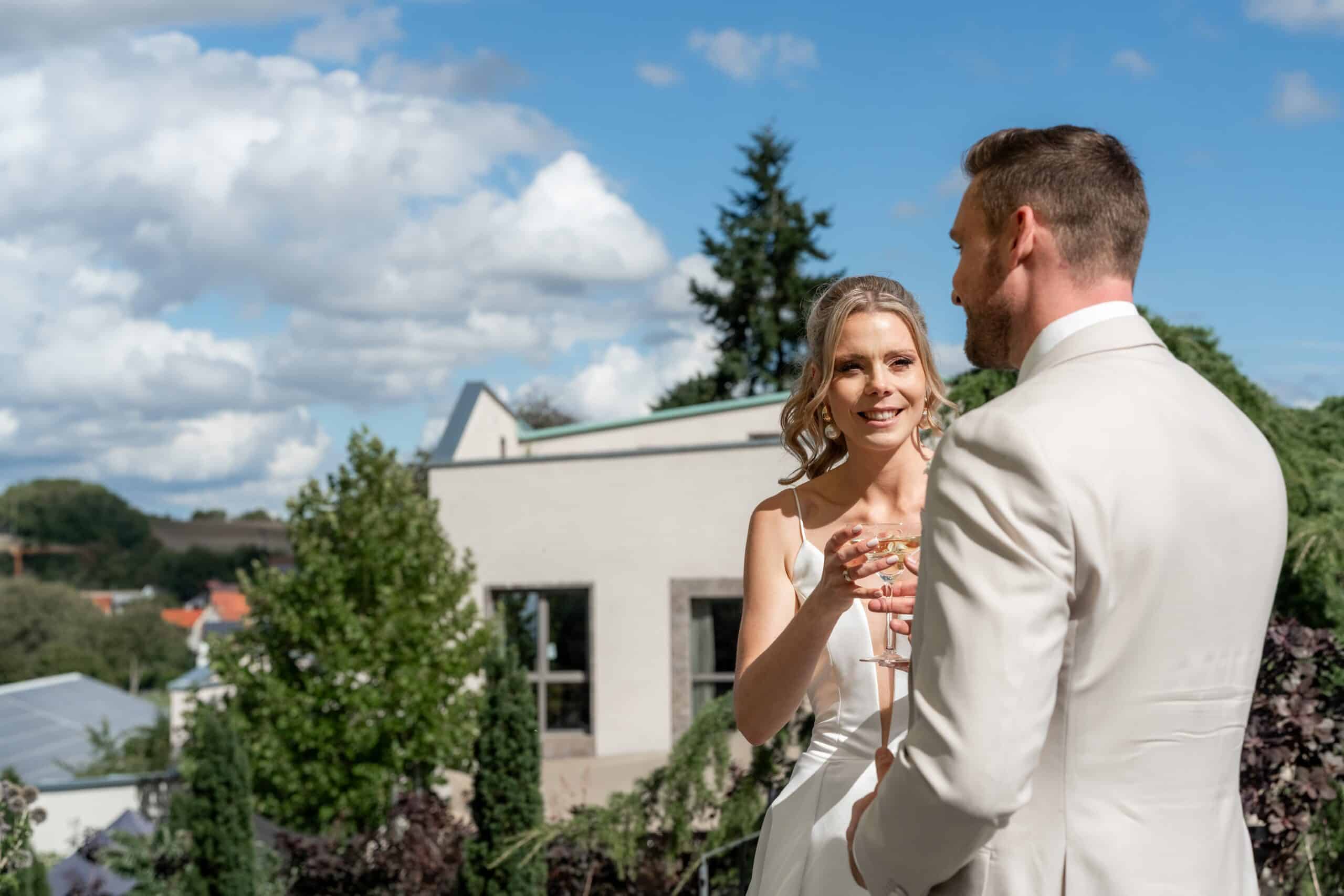 Pia und Tony feierten ihre Hochzeit in der Villa Oriental in Würzburg einer Location die mit ihrem mediterranen Flair sofort wie ein Kurzurlaub wirkt. Die beiden wollten eine entspannte offene Sommerhochzeit ohne starres Programm und genau das spürt man in jedem Moment dieses Tages.