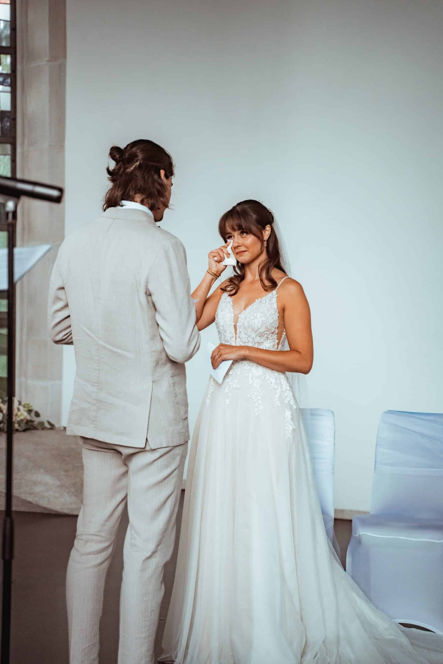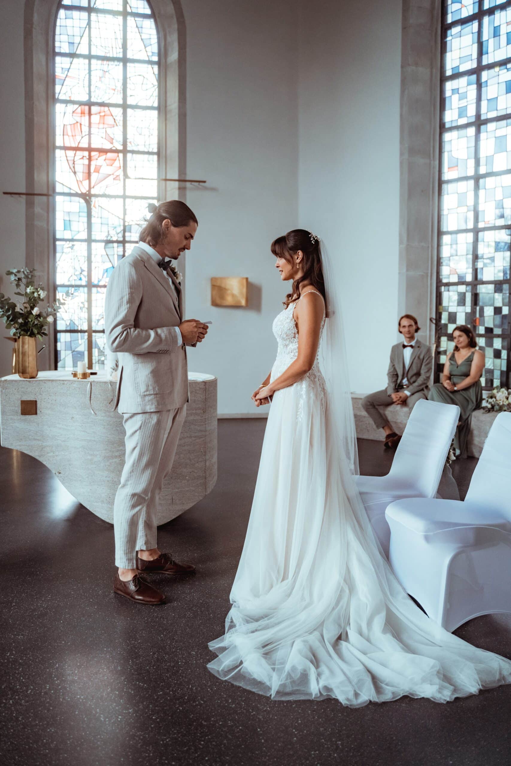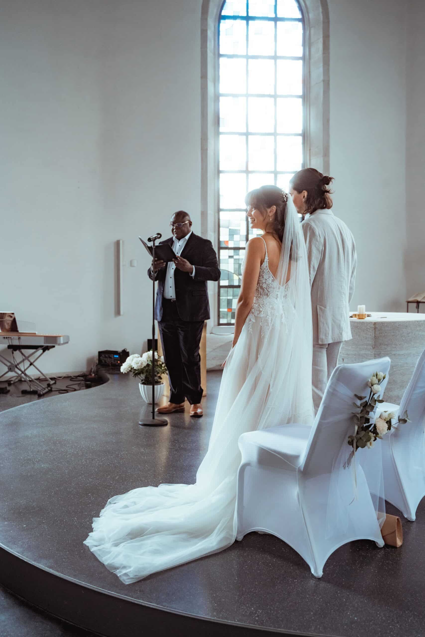 Wer die Location kennt, weiß, warum sie so beliebt ist – man hat nicht nur diesen wahnsinnigen Blick über die Mainschleife, sondern mit der Kirche direkt auf dem Gelände auch alles an einem Fleck. Keine langen Fahrten, kein Stress, sondern einfach ankommen und den Tag genießen.