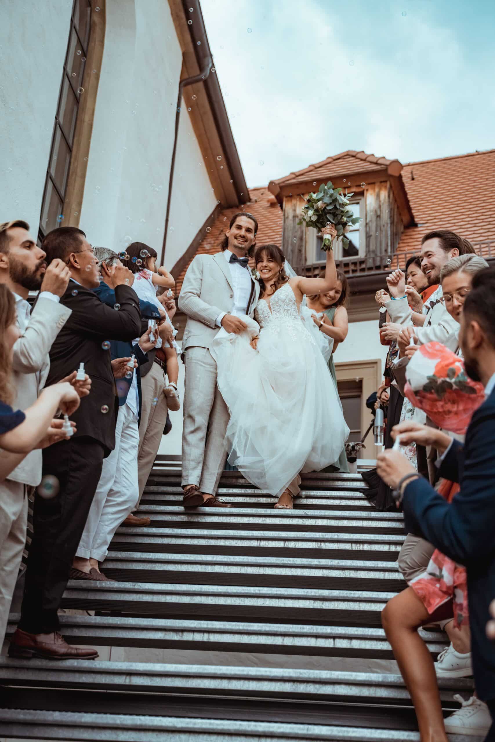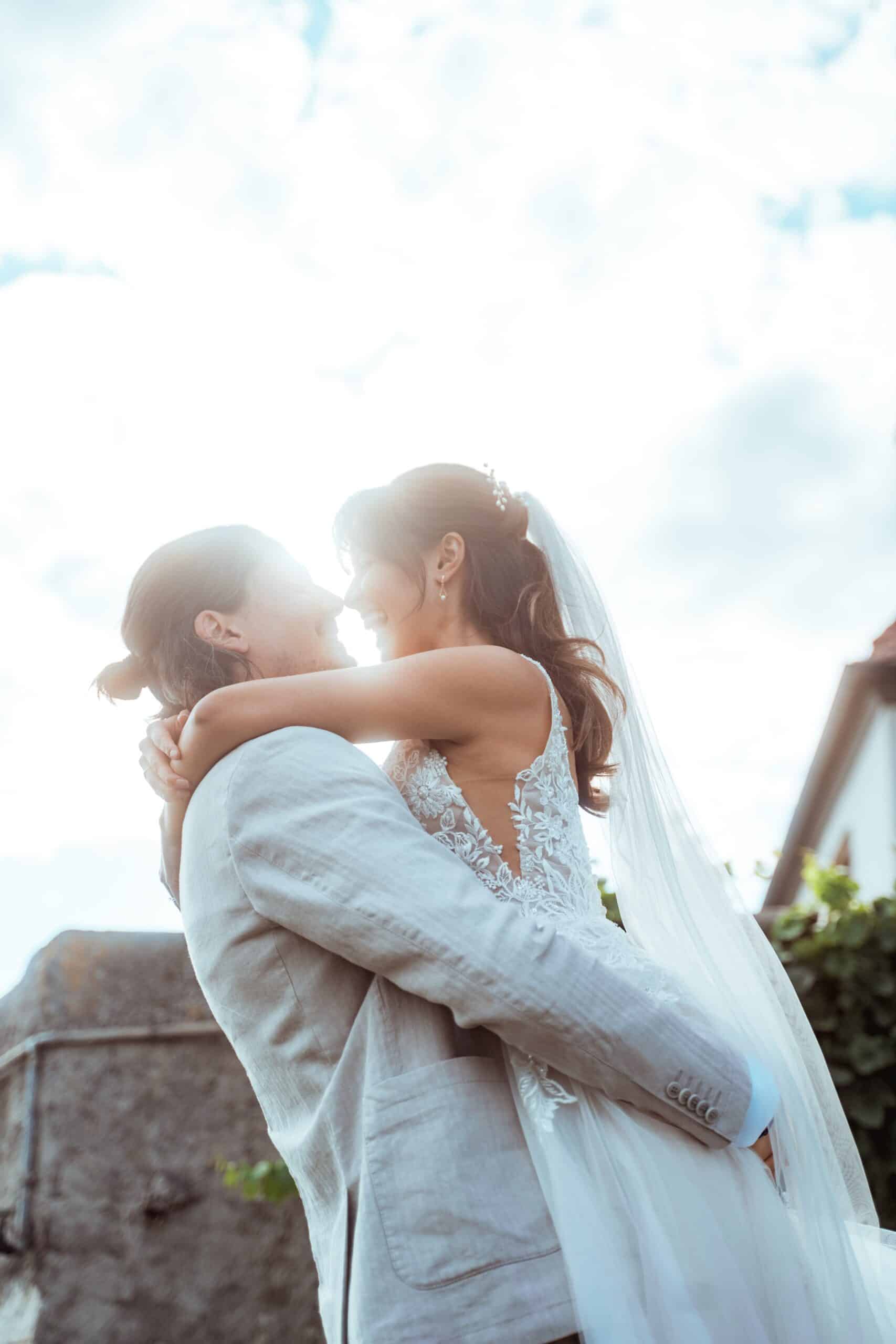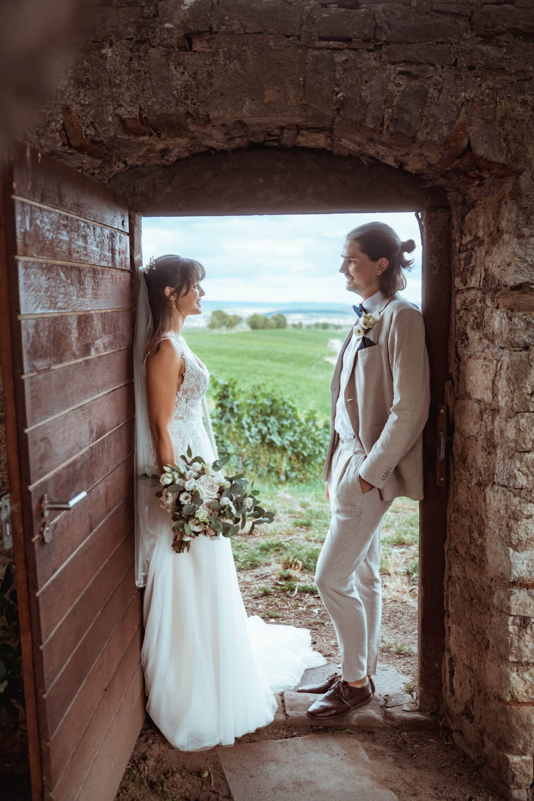 Tiziana und Christoph haben sich für ihre Hochzeit einen Ort ausgesucht, der in Franken fast einmalig ist: Die Vogelsburg in Volkach.